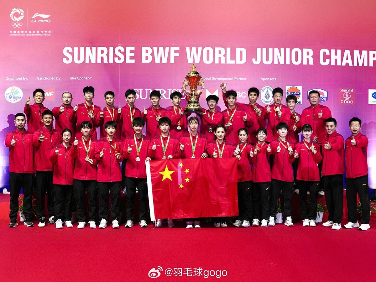 国羽夺得世青赛团体冠军 中国队领奖图,来源见左上角