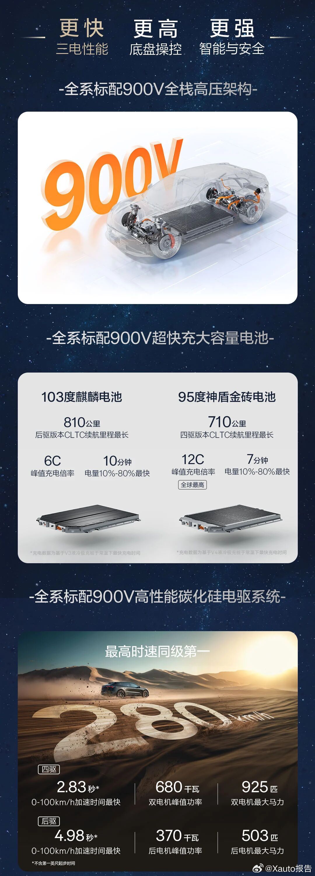 双电机最大马力925匹,零百加速最快2.83秒,最高车速达到280公里/小时;