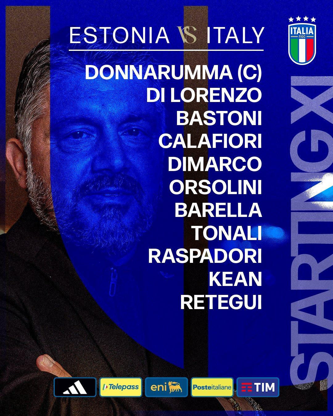 虎扑10月12日讯世欧预第7轮,意大利客场挑战爱沙尼亚,赛前双方公布首发名单: