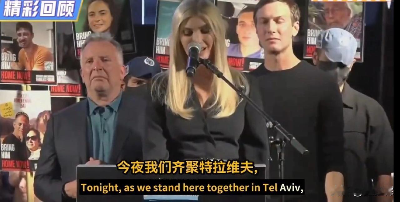 内塔尼亚胡忙活了几十年,怎么感觉是为别人作了嫁衣! 就在近日巴勒斯坦和以色列停火协议进行得如火如荼之际,美国总统特朗普家的大公主携手女婿贾里德·库什纳出现在了特拉维夫,出席一场40万人之多的集会。 伊万卡在集会上,发表了演讲:祝福那些被解救的人质,颂扬其父特朗普的丰功伟绩,还有丈夫库什纳所作出的努力,让人感觉以色列和巴勒斯坦之所以能够达成停火,全靠特朗普夫婿两人。 而现场40万民众不断发出高声感谢美国总统特朗普,感谢伊万卡女士,感谢库什纳,感谢中东问题特使史蒂夫。 可以说:以色列民心已经被夫婿三人收入阆中,库什纳作为犹太裔,今后不论在以色列还是在犹太财阀之中的地位,将会不断攀升,都以为特朗普不靠谱,其实他做的看似不着调,其实每一步无不是在算计之中,在为自己家族某利益,某后路。