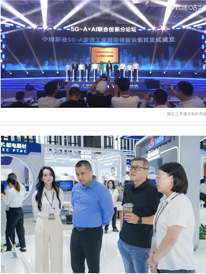 会议期间,亨通光电副总经理轩传吴受邀出席“5g-a×ai联合创新分论坛”,在炉边对话环节轩传吴与中国移动研究院网络与it技术研究所副所长围绕“算网智一体化解决方案,赋能智慧生产”展开深入交流,并共同见证了中国移动5g-a新型工业网络创新示范区正式成立,展现了亨通在推动工业智能化转型中的积极角色。