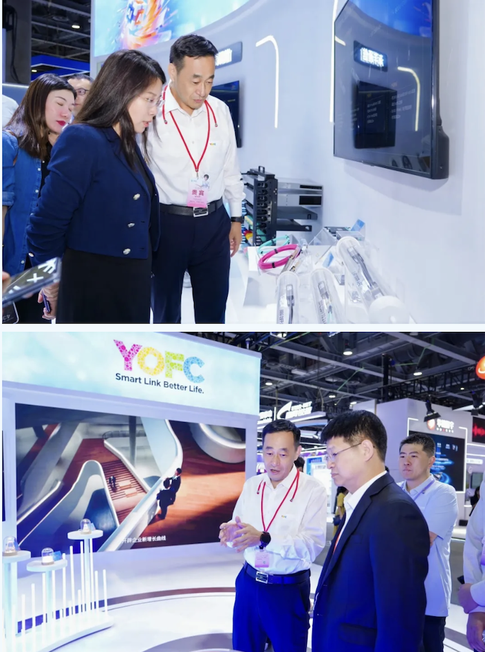 中国移动供应链管理中心副总经理崔芳,中国移动网络事业部副总经理顾宁伦,中国移动贵州公司党委书记、董事长、总经理张丽等莅临长飞展台参观指导,长飞公司副总裁聂磊接待。