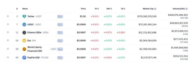 作为背景,USDe是EthenaLabs团队推出的“合成美元”稳定币。在CoinMarketCap的稳定币市值排名中,USDe是USDT、USDC之后的全球第三大稳定币,市值规模超过120亿美元。