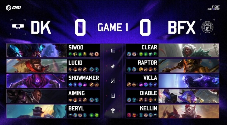 DK:Siwoo、Lucid、ShowMaker、Aiming、BeryL
