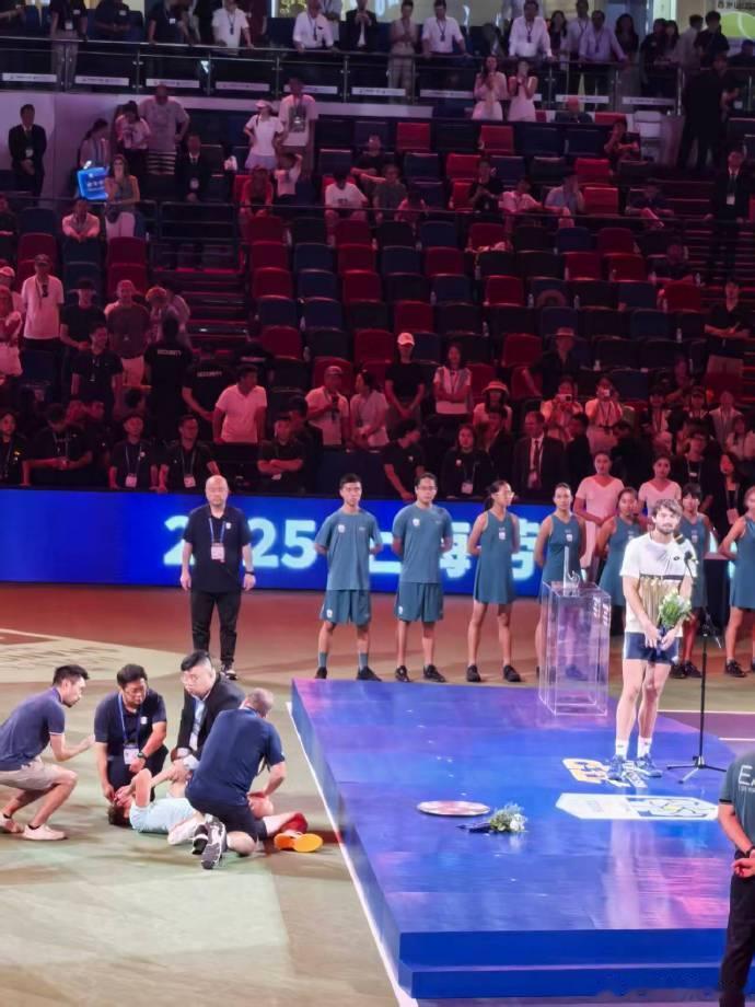 虎扑10月12日讯上海大师赛决赛颁奖典礼,表弟瓦舍罗在发表感言时,林德克内希突然倒下,从颁奖台滚下去。