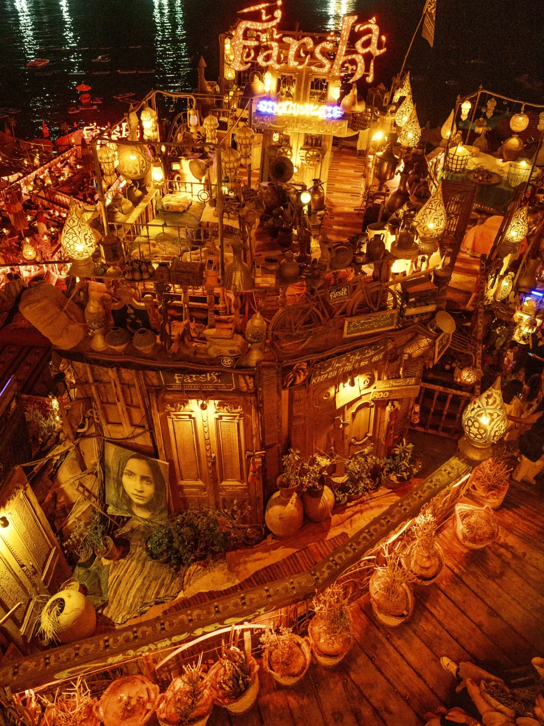 这家悬崖酒吧,白天充满异域风情,晚上灯光亮起像是误闯埃及“一千零一夜”