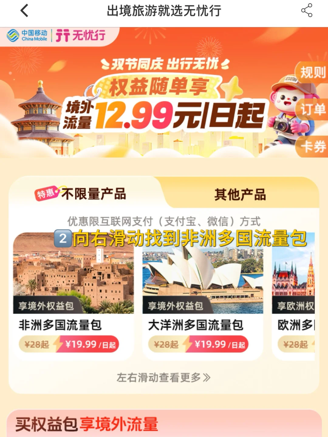 3️⃣向右滑动找到非洲多国流量包/“一带一路”多国流量包