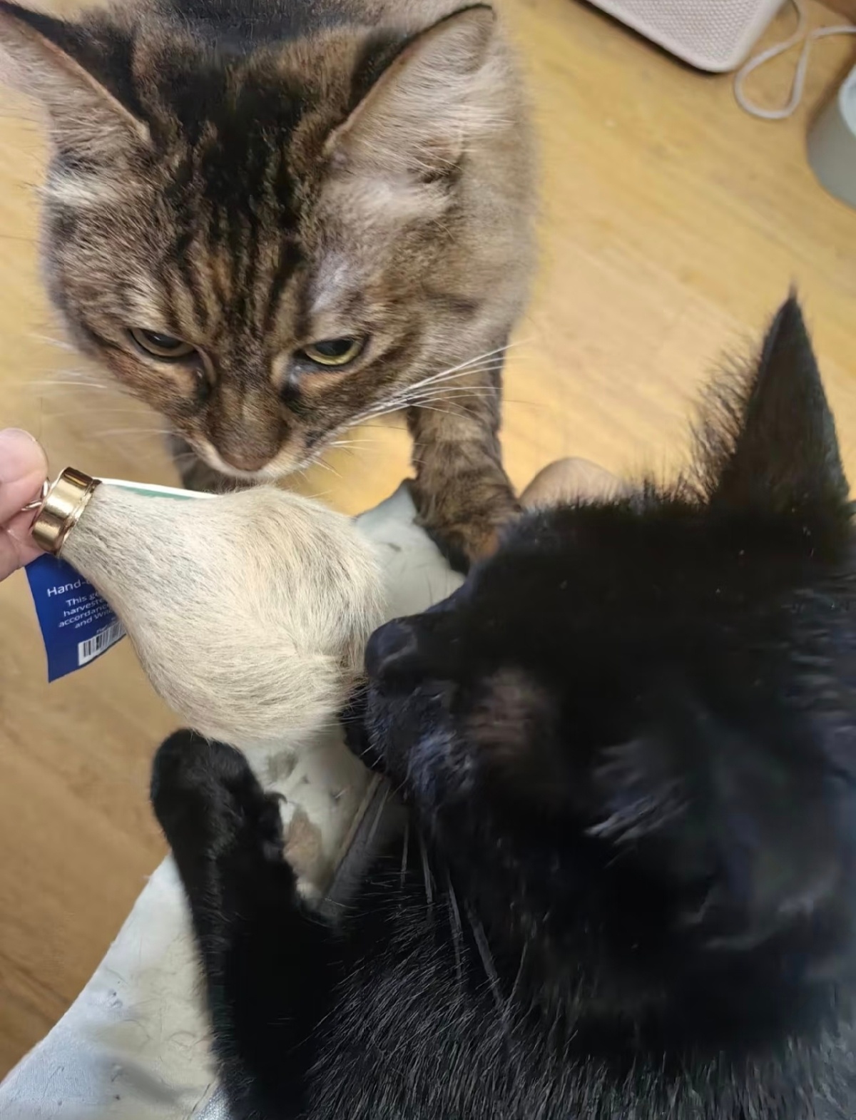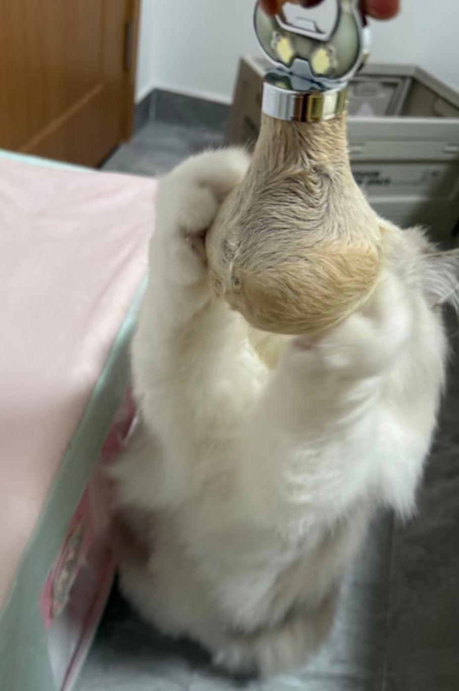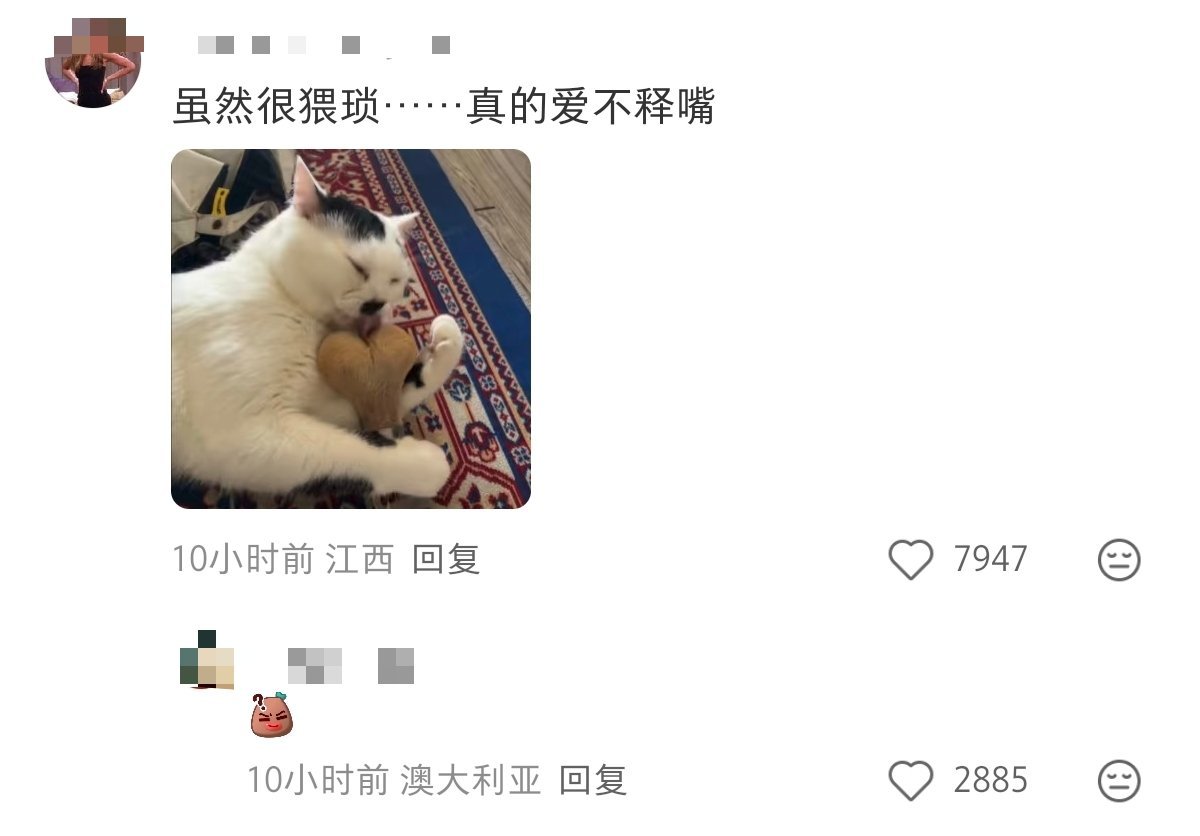 刚刚刷到这一幕。简直是太感人了。猫咪的小玩偶坏了。猫咪就开始抑郁了,不吃不喝。不