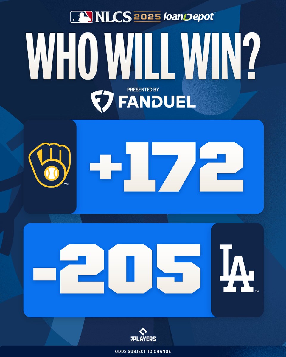 MLB官方X账号发推特报道,目前国联仅剩两支球队争夺世界大赛席位。哪支球队能晋级#WorldSeries?赔率数据来自@FDSportsbook。