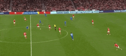 扎菲里斯失误送大礼,霍伊伦抓住机会捅射破门,丹麦1-0领先。
