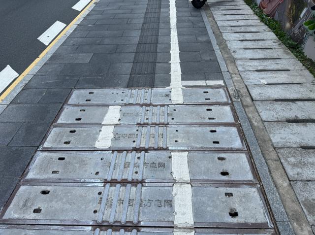 记者注意到,晓风路上的井盖大多印有“南方电网”标识,属于市政电力管线设施。盲道的断点主要集中在这些电力井盖处。