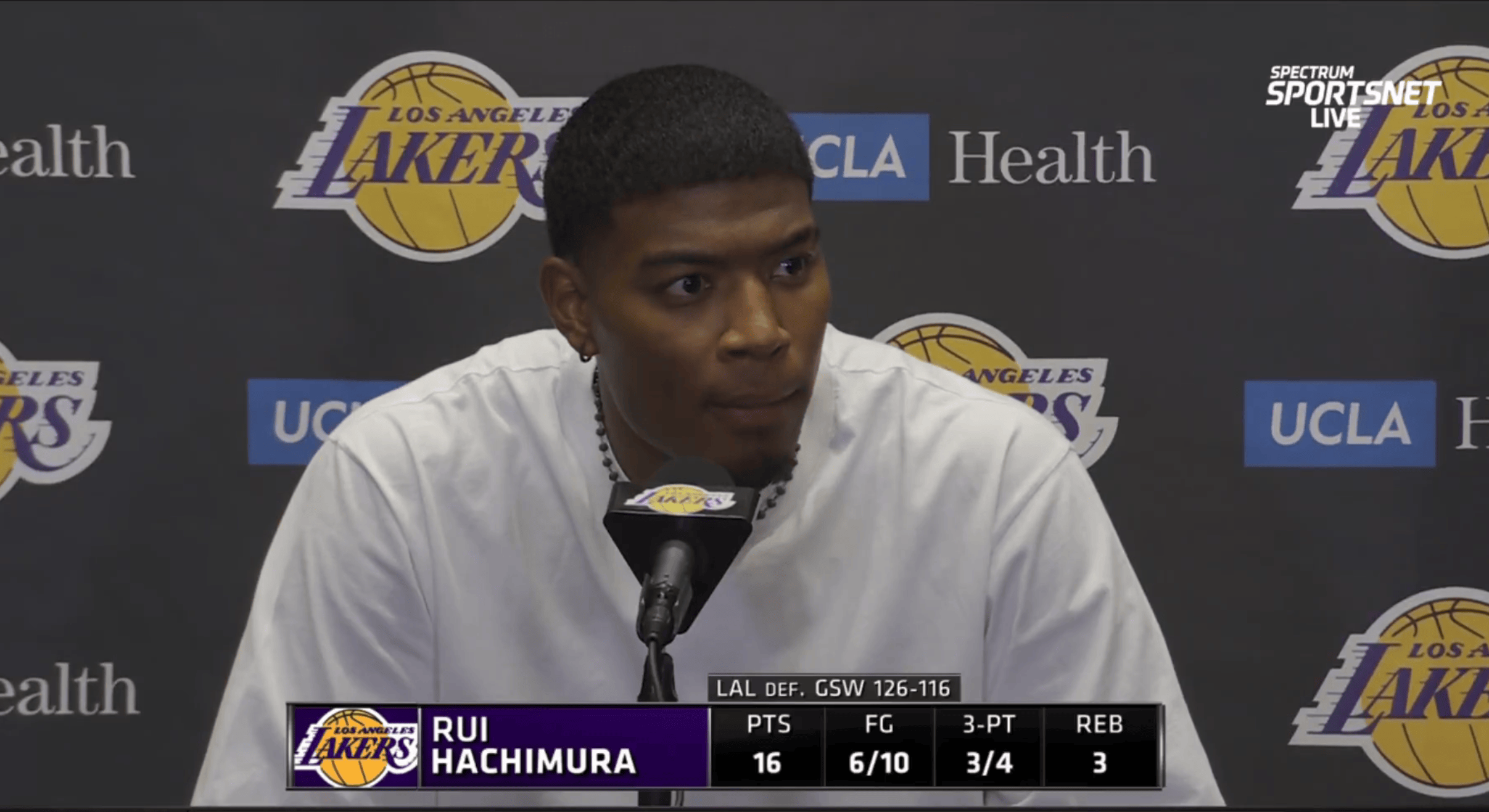 赛后,八村垒接受了记者的采访,谈到了勒布朗-詹姆斯因伤缺阵时期,自己的进攻角色有何变化时,他表示: