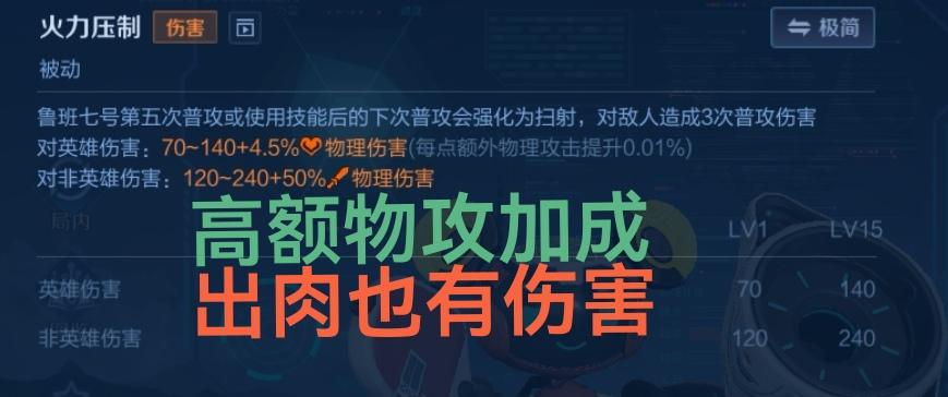 王者荣耀,s41赛季,领先版本的独家出装推荐: 全肉(高伤害)鲁班七号 鲁班是射手里面最容易死的,以至于现在都没人愿意玩了。 其实现在的装备肉装收益很大,尤其适配鲁班。 所以小鲁班完全可以出全肉: 物抗鞋,补坦度。 破晓,破甲伤害。 冰握,攻击物抗。 破魔刀,攻击魔抗。 血魔,攻击护盾。 苍穹,攻击免伤。 值得一提的是,现在所有主动技能装备,都不共享cd了。 所以血魔和苍穹是可以一起出的。 铭文带16物吸,16暴击,140物抗。 这套出装后期390物攻,690物抗,450魔抗,1500生命,30破甲,16物吸,20冷却,31暴击。 被动扫射的伤害并不低,另有血魔被动,冰握被动,加上破甲。 这就是鲁班七号领先版本的独家全肉出装,大家学会了吗[思考]