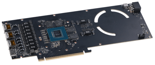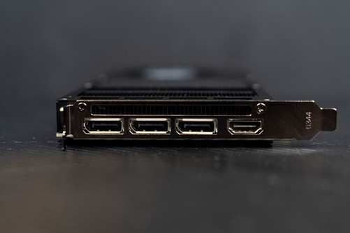 显卡左侧为金属散热鳍片,直接将核心接触的散热鳍片裸露在外,加大散热效率,并且风道由此处与视频接口处吹出。