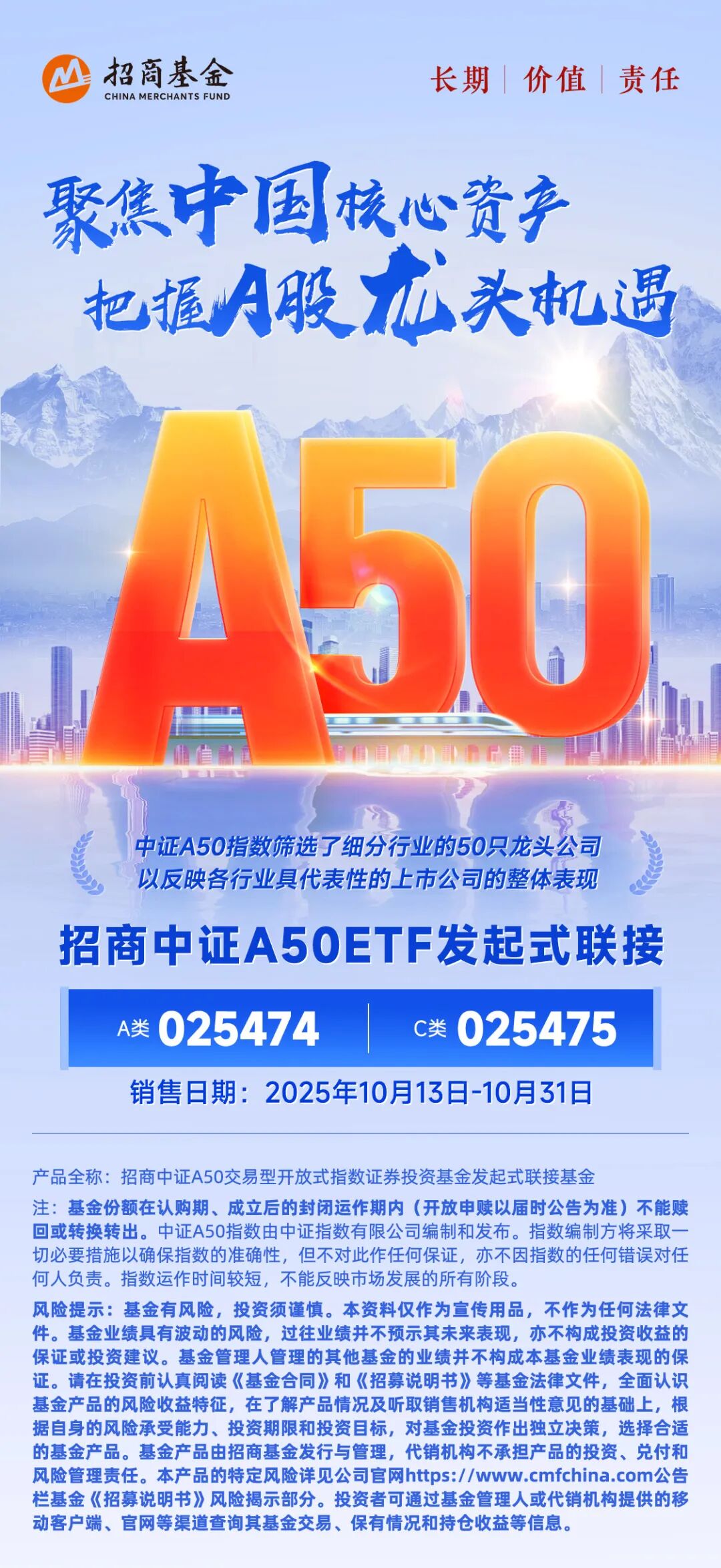 对投资者而言,也可通过[招商中证A50ETF发起式联接](A类:025474C类025475),10月13日-10月31日正式发售,场外一键布局中国50个细分行业龙头,共享中国高质量发展红利。随着美联储降息预期升温,中长期资金入市、险资权益投资试点扩大,作为核心资产的中证A50,有望迎来进一步的“盈利修复+估值抬升”的戴维斯双击。
