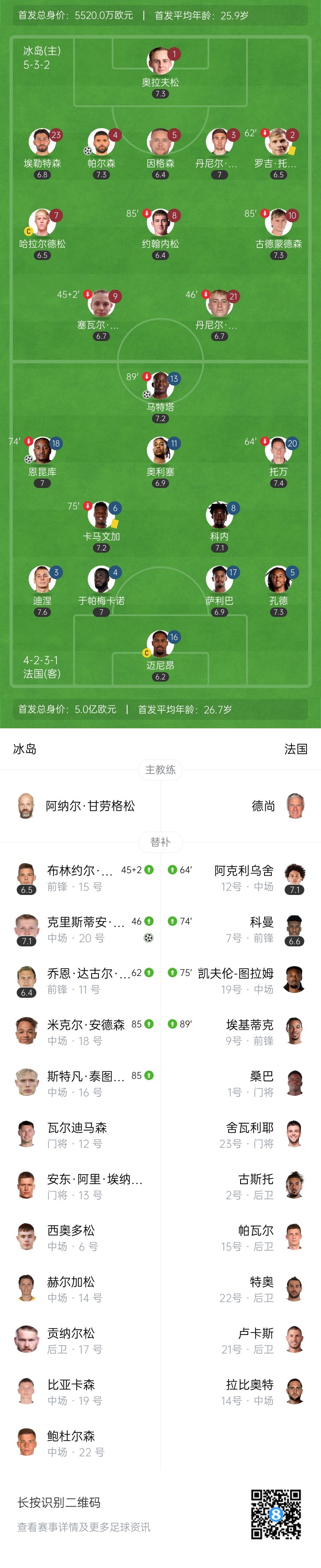 第70分钟,冰岛反击机会后场连续流畅配合出球,古德蒙德森无私分球,赫林森单刀机会冷静破门,冰岛2-2法国↓
