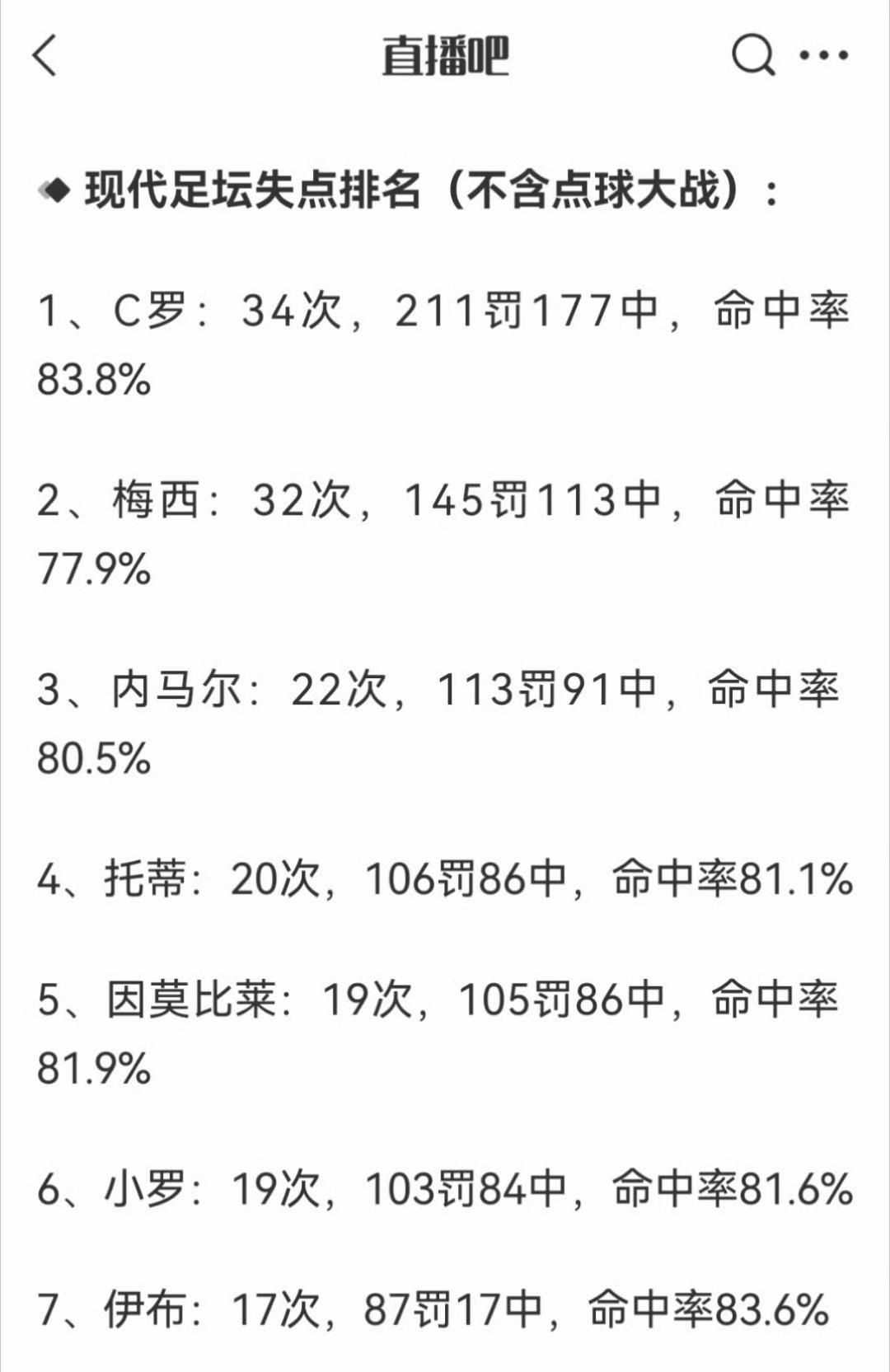 超越梅西,C罗成为足坛历史失点王!懂球的都知道,梅西的点球成功率一直不高,职