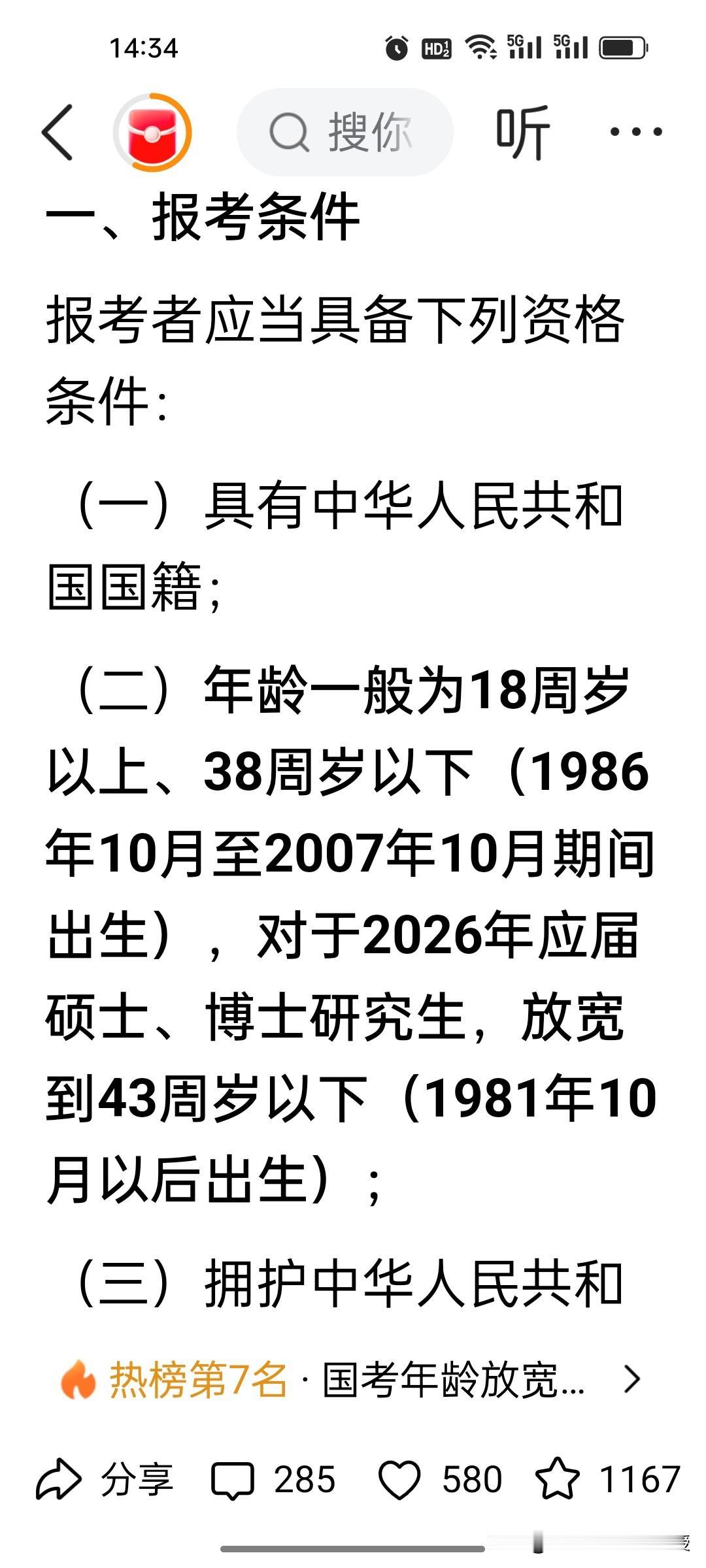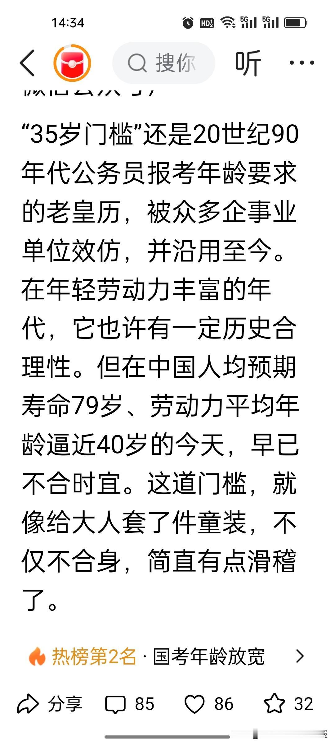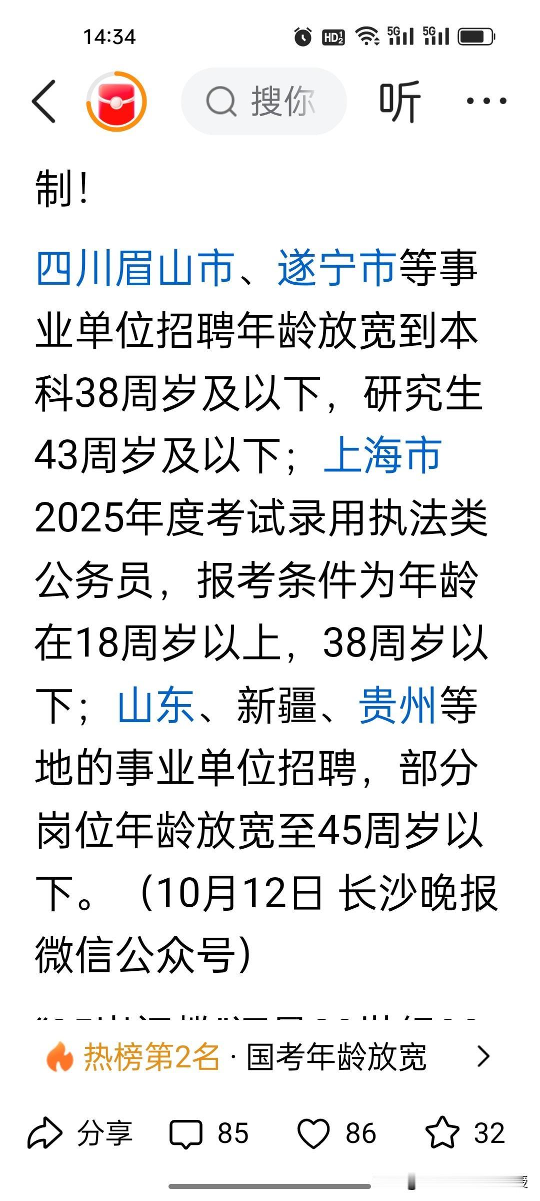 重磅!35岁从今年开始不会再是一道坎了!国考年龄放宽到38岁了,应届研究生放宽到43岁以下了! 35岁门槛从今年开始彻底拆了!前两天,上海,山东等地已经把考编考公年龄最宽放到45岁,今天看到国考也同步放宽了,85后依然还有机会报考公务员。很多人说,85后错过了时代红利,孩子上小学了,现在有育儿补贴了,现在总算抓住了考公的尾巴。不过可以预计,今年国考报名人数会再创新高,竞争也很激烈。 国考都取消了35岁的门槛,国企和民企招人也应该同步取消35岁的招聘门槛了。