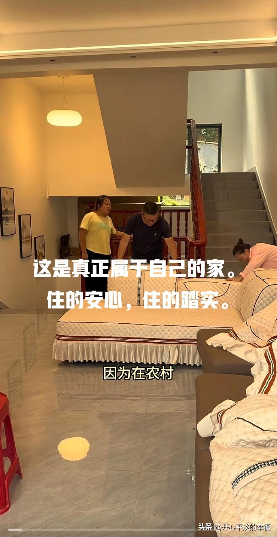 通过做自媒体,拍视频,做直播。勤劳的杨妈夫妻俩终于住上了属于自己的大房子。[比心][比心] 妇唱夫随。小两口依靠自己的努力盖上了大房子。结束了租房子的生活,终于有了自己的家,一家四口的生活一定会越来越好! 杨妈记录生活。是头条推给我的。从一刷到我就关注了。我也是农民的孩子,在农村长大, 杨妈的视频让我莫名有一种亲切感。 还不到30岁的女孩儿。从打工到做自媒体让自己的生活发生了翻天覆地的变化。视频从一开始的几百个点赞到现在的上万点赞。杨妈的直播间不管多晚,都会有几千人在线。我在杨妈这里买了好几次产品。在杨妈身上。大家仿佛看到了自己的影子。 夫妻俩每天忙于拍视频,杨妈把老公叫老保姆。杨妈老公也是一个老实的农村孩子。天天跟着媳妇儿做直播,还有一家人的生活。两个孩子也没有说多么娇生惯养。却都教育的很好,活泼开朗。大姑姐也跟着夫妻俩一起帮忙。一家人其乐融融。 小两口通过直播带货,做短视频。终于攒够了积蓄。盖上了大房子。今天家具已经摆好了。把沙发,餐桌都套上了保护套。大房子干净整洁明亮。真替他们开心。 时光不会辜负每一个努力的人。