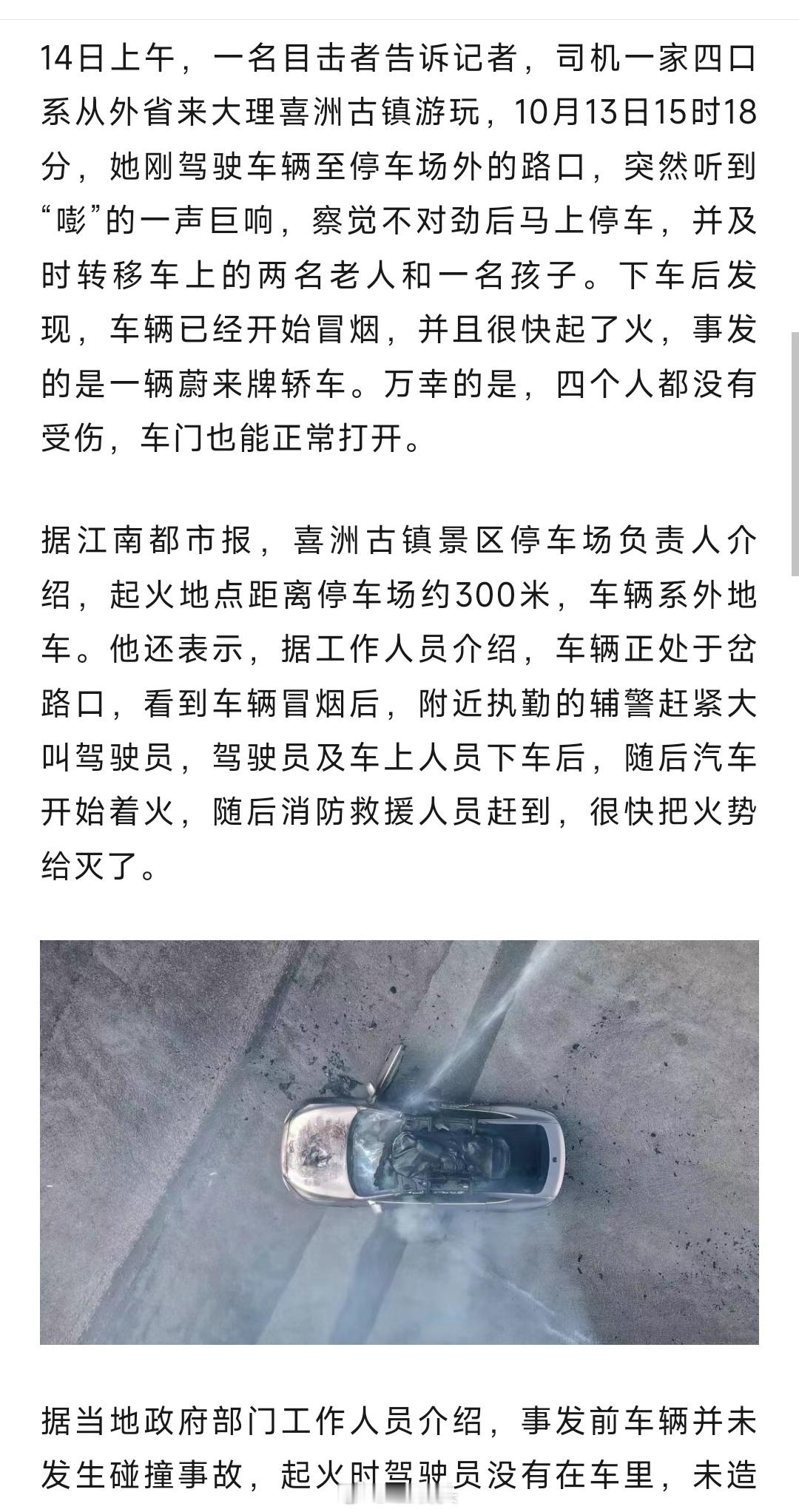蔚来明显不是电池起火,底盘没啥事驾驶室烧了,人也没事撤退了,粗粮车门没打开人没了,烧剩车架子。