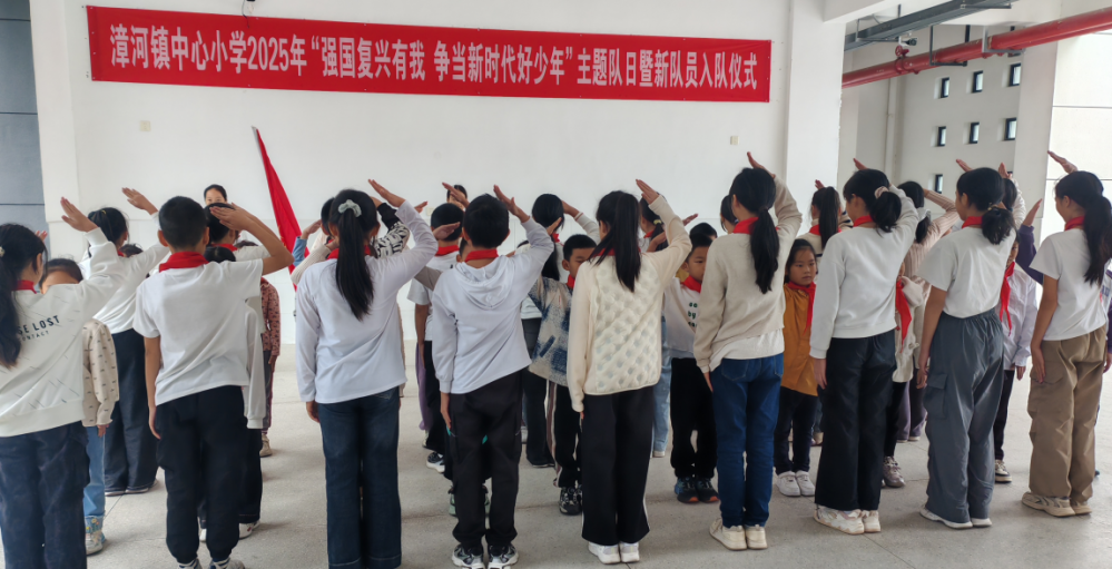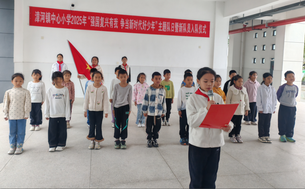 为增强少先队员的光荣感和归属感,引导少年儿童传承红色基因、争做新时代好少年,2025年10月14日,漳河镇中心小学隆重举行“强国复兴有我争当新时代好少年”主题队日暨新队员入队仪式。