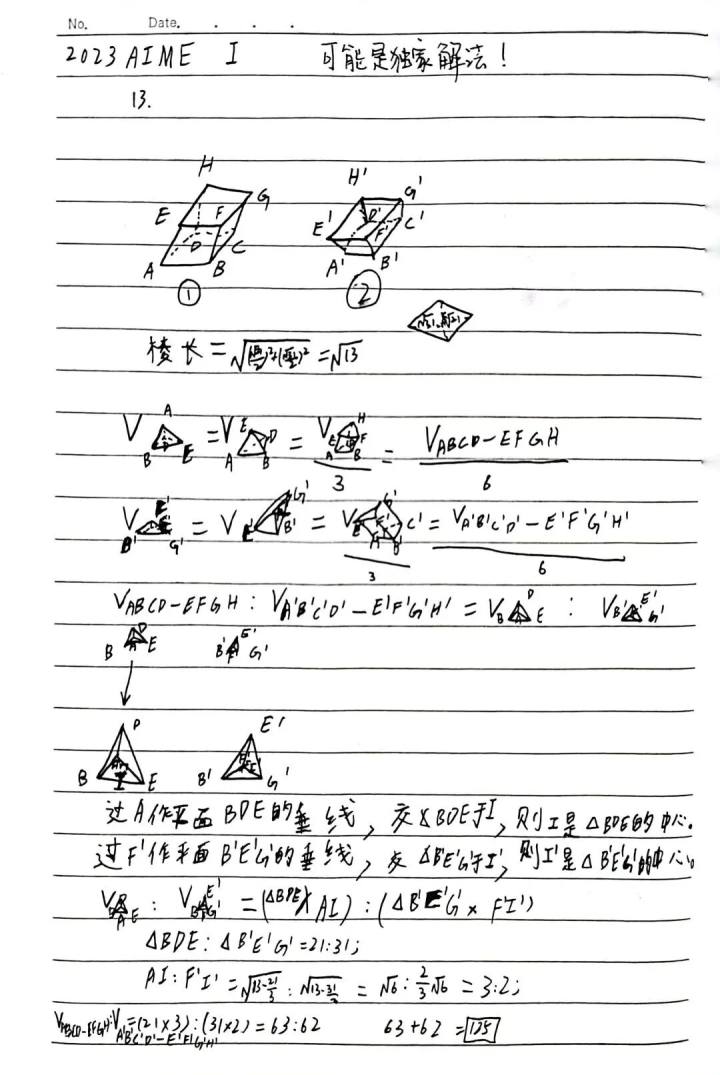 2020年6月,年仅7岁的他已能精准背出自然常数e小数点后50位,刘喆妈妈分享了一段视频,仅花14秒)。还有段视频中,刘喆熟练掌握了组合计数中“标数法””连环标数法"等进阶技巧,据数竞教练说,这类知识点通常要到小学四五年级的深奥课程中才会涉及。他妈妈分享的图片中还有他因为感兴趣而试做的美国数学邀请赛的题目的解法。