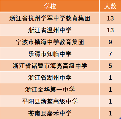 此外,湖州中学、金华第一中学、平阳县浙鳌高级中学和苍南县嘉禾中学各有1人入选。
