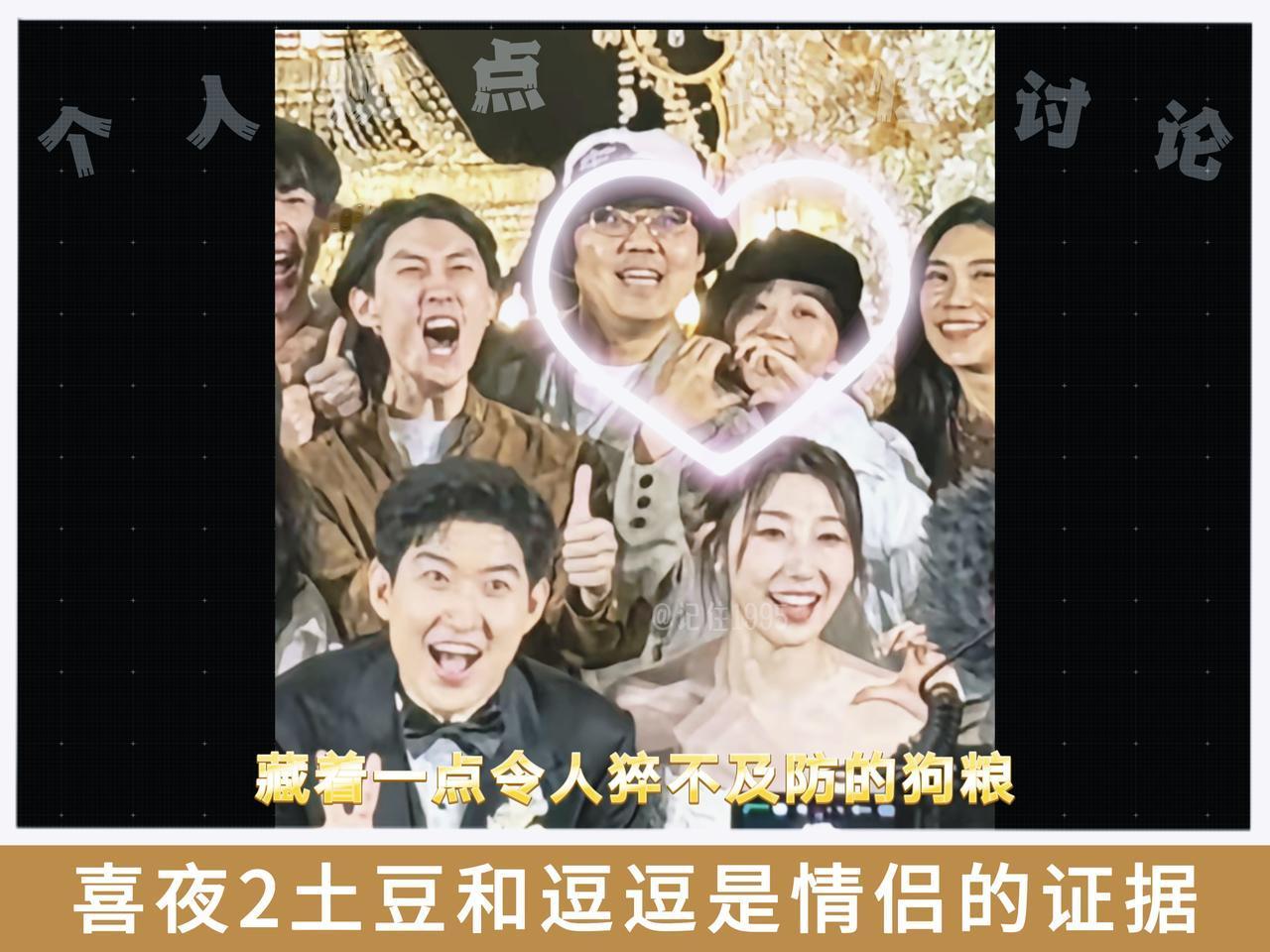 喜人奇妙夜幕后冷知识第一期:土豆和李豆豆是情侣! 证据也很简单,从名字就能看出来了,two豆等于豆豆。 开玩笑的,正经的理由是,在闫佩伦婚礼合照里,没人关注的角落里,藏着一点令人猝不及防的狗粮。这就是为什么土豆看李豆豆表演时,土豆全程都是眼含泪水地看着的原因,大概是心疼豆豆一个人在台上表演独角戏的困难吧。 这也是为什么李诞没给豆豆投票时,土豆情绪激动跑过去给了李诞一拳的原因。 总之在喜人内部这对神仙眷侣已经是众所周知的事情了,但两人从来没拿这件事出来炒作,真的很难能可贵,甚至可能组团时也是刻意避开的。喜人奇妙夜 其实两人的互动最早能追溯到第二季喜剧大赛的时候,当时马丽称赞小碗管乐是很优秀的女喜剧演员,后台的土豆立马对豆豆说她也很不错。 也不知道那时候土豆是在吸引逗逗的关注,还是已经在一起了。