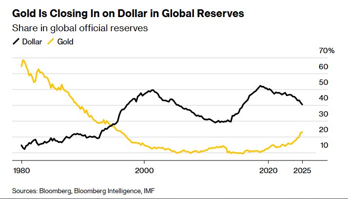 “如果各国储备管理者不仅继续减持美元,还减持所有法定货币,黄金的价格可能会继续上涨,”Eurizon策略师上周写道,“如果各国央行的黄金储备与美元储备持平,在其他条件不变的情况下,黄金价格可能达到每盎司8500美元。为什么不可能呢?”