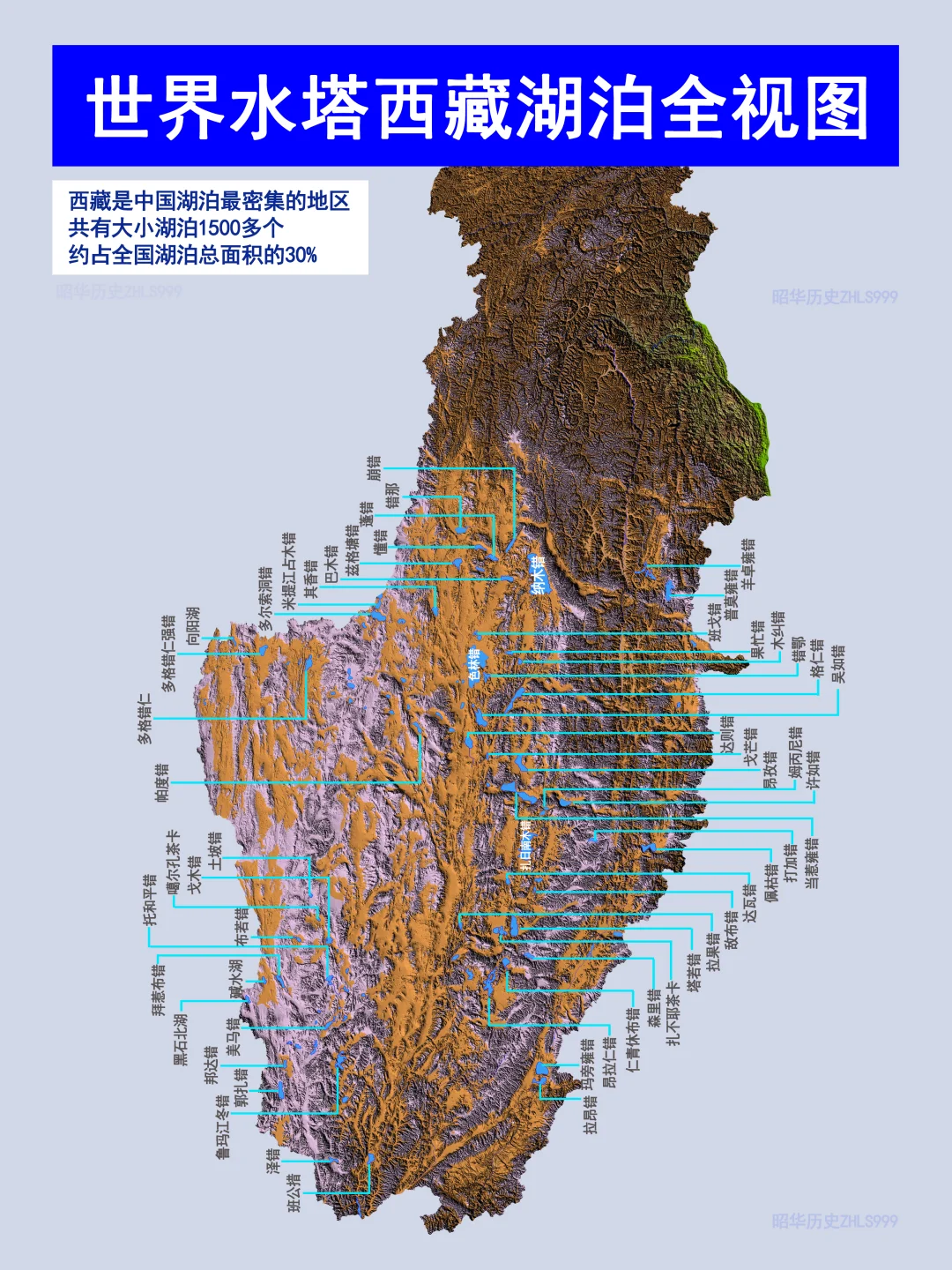 🔵当惹雍措,位于那曲市尼玛县,面积835 km²,海拔4528米,是咸水湖、西藏最深的湖泊,最深处达230米。