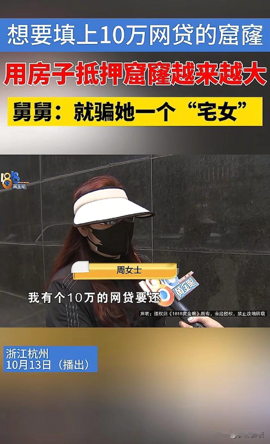 为还10万,贷了70万,房子都快搞没了[捂脸] 根据1818黄金眼报道,在浙江杭州,因为有10万贷款要还,想着拆东墙补西墙,结果反而被套路用房子抵押贷了70万,贷款公司还收取接近19万的费用。 开始给女孩说是银行一定能办,结果变成了民间借贷,忽悠用房子抵押了,收取20%手续费14万,又扣了她5.4万所谓定金。据他家人介绍他是一个宅女,没有工作,一直在家里面,只是说家庭条件还可以,所以名下有一套房子,现在260万的房子没了,还莫名背了这么一大笔债。 后续在记者介入以后,说是协商完成,已经退还了一些费用,但是具体不便透露。 所以任何电销都不可以信啊… 贷款这个东西非常神奇,有钱人不缺钱,不缺资产,要么不用贷,要么随便贷。 穷人没钱,没资产,偏偏做生意,或者翻身的时候就需要贷款,但就是不放。