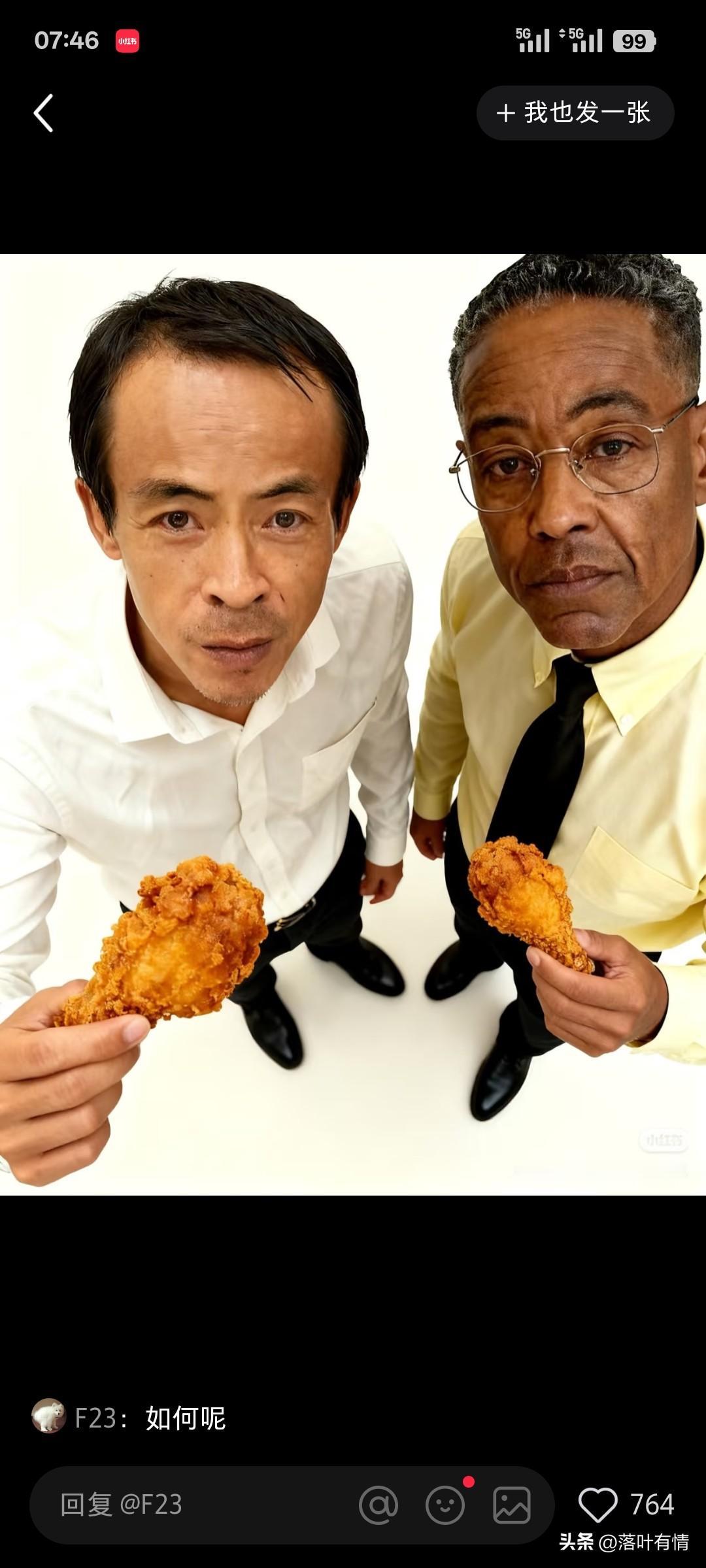 江西鸡排哥是真的火, 网友也太有才了, 给鸡排哥制作的封面帅不帅, 有没有一种鸡排教父的感觉, 美国有教父, 我们有鸡排主理人, 同样的眼神犀利, 炸完你的炸你的, 大家不要急我来安排, 这点小场面我还是没问题的, 更搞笑的是网友还扒出了美国鸡腿哥, 两人一站说不出的有趣, 中国是鸡排哥, 美国是鸡腿哥, 要是让两人见面来一场PK那应该挺好玩的,大家觉得两人谁会赢? 鸡排哥 鸡排哥景德镇 景德镇鸡排哥 鸡排哥