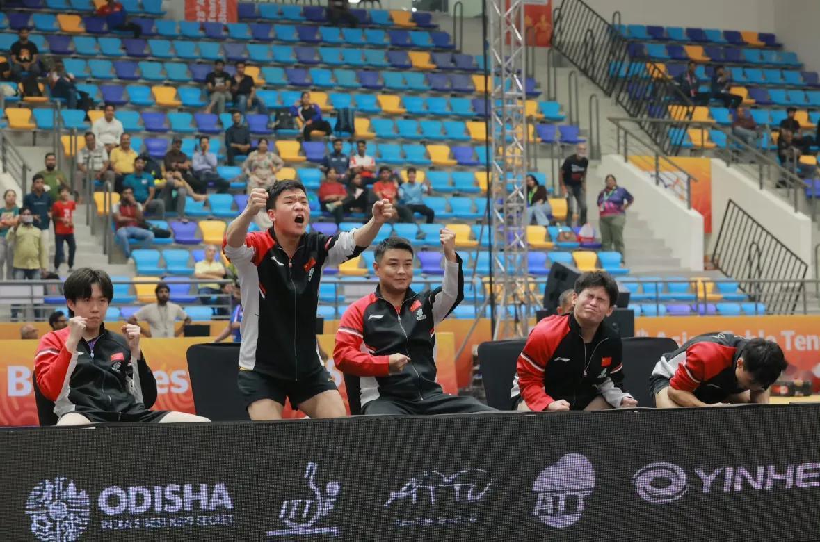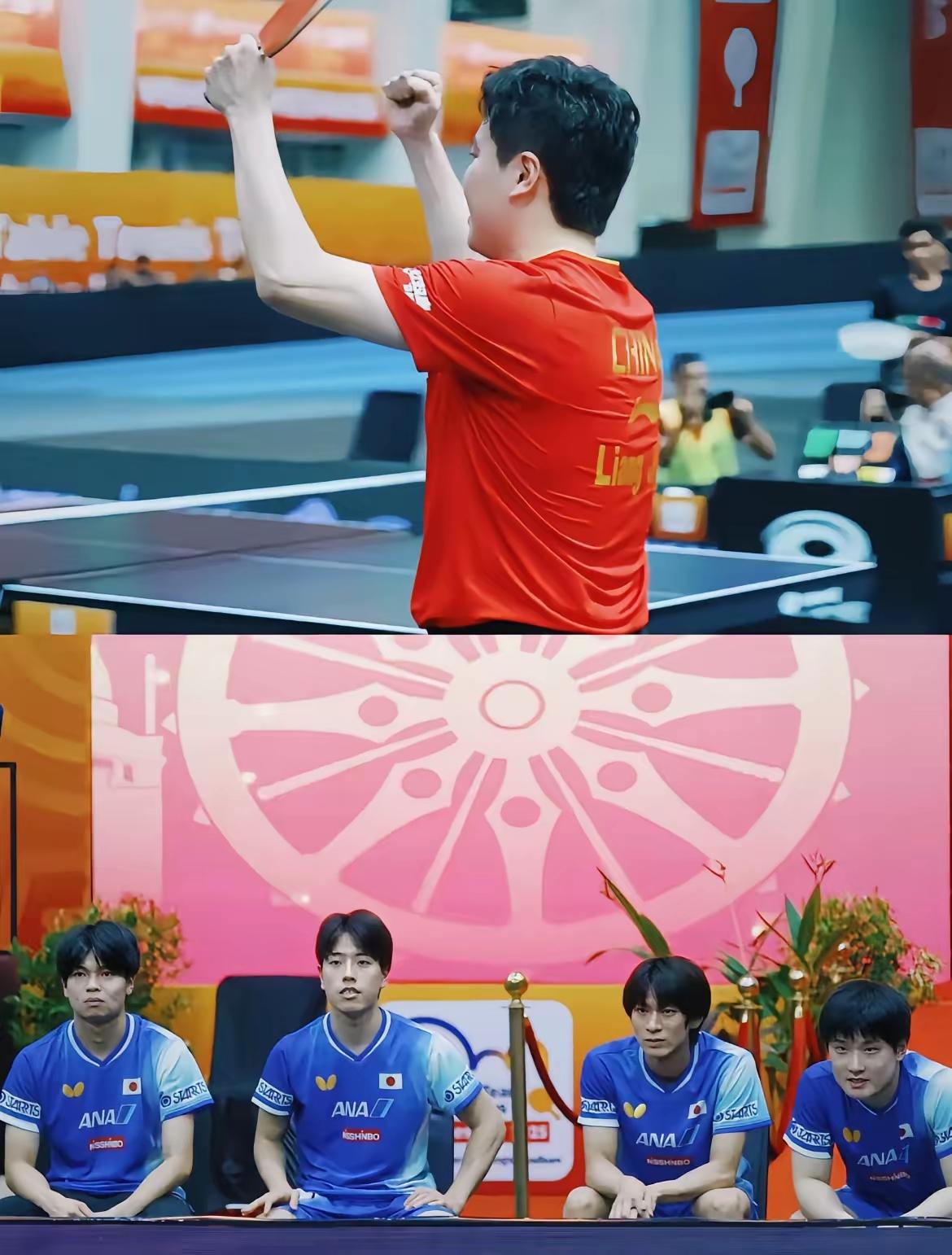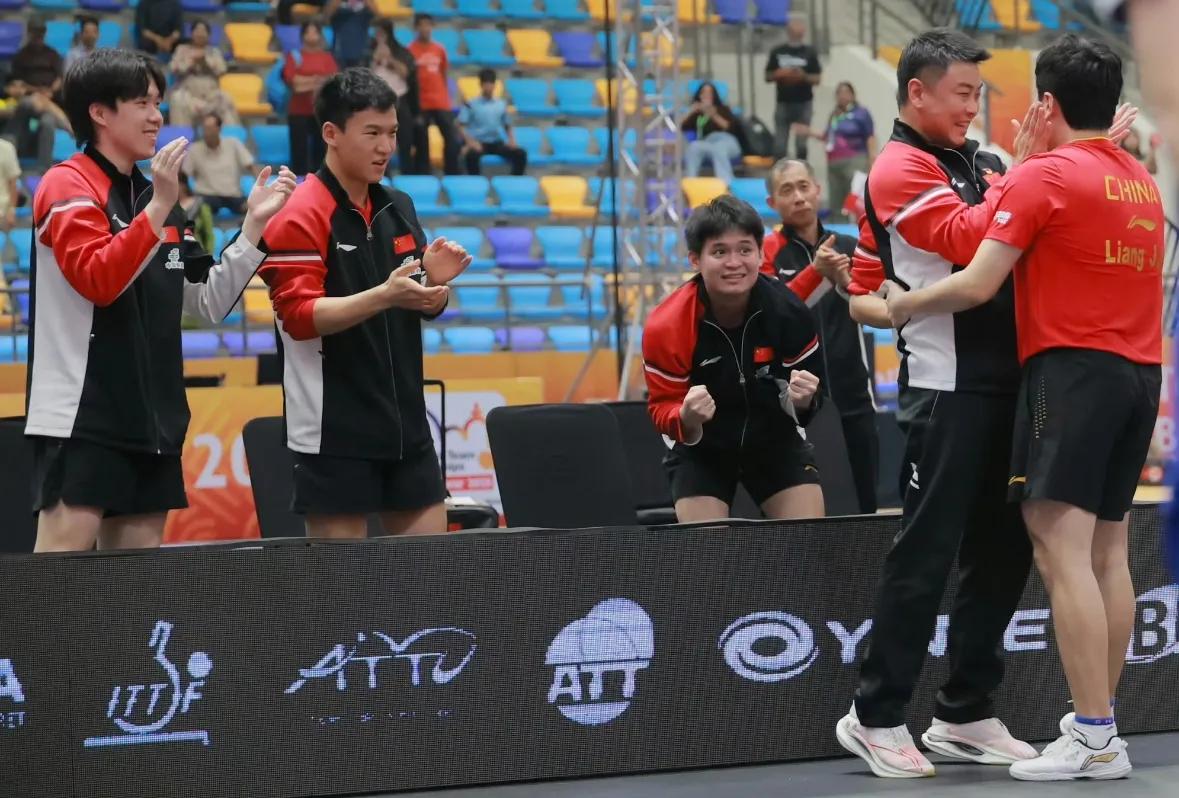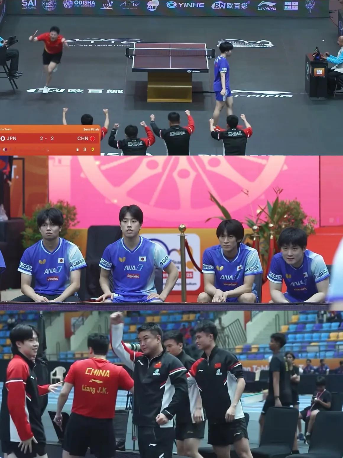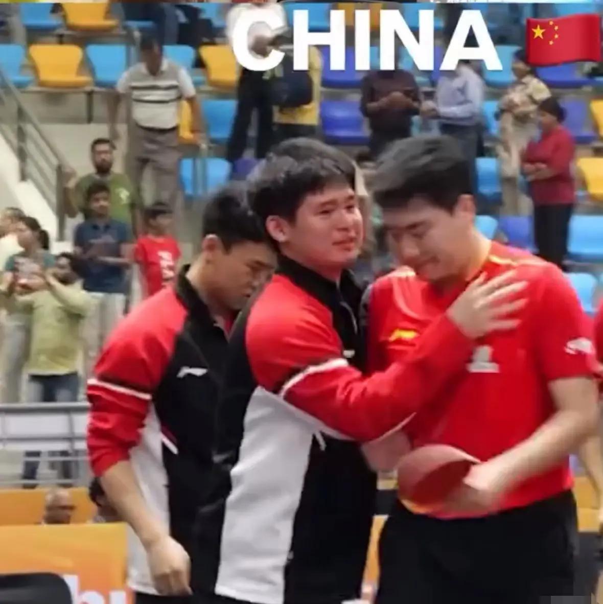 看看这画面,看看我们国乒的民族血性,我们的团魄凝聚力 能不感动的流泪吗? 梁靖崑最后顶住了压力赢下比赛时,王皓指导握拳向张本智和让他们看看,中国队的家国情怀团结一心,他们日本队是没有的,张本智和无论怎样替日本队出力也不行。 看看小石头和大胖激动的泪目 看看向鹏,周启豪他们和场上的队员一样的热血,全力以赴的为队友加油鼓励。 王皓指导宠爱的摸大胖的脸,王楚钦,向鹏鼓掌祝贺,小石头握拳加油祝贺,看到这些有血性爱国的中国人怎能不感动,不流泪。