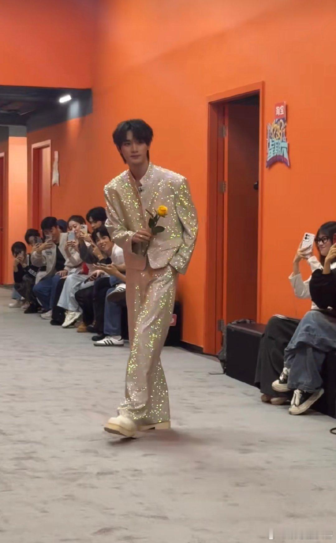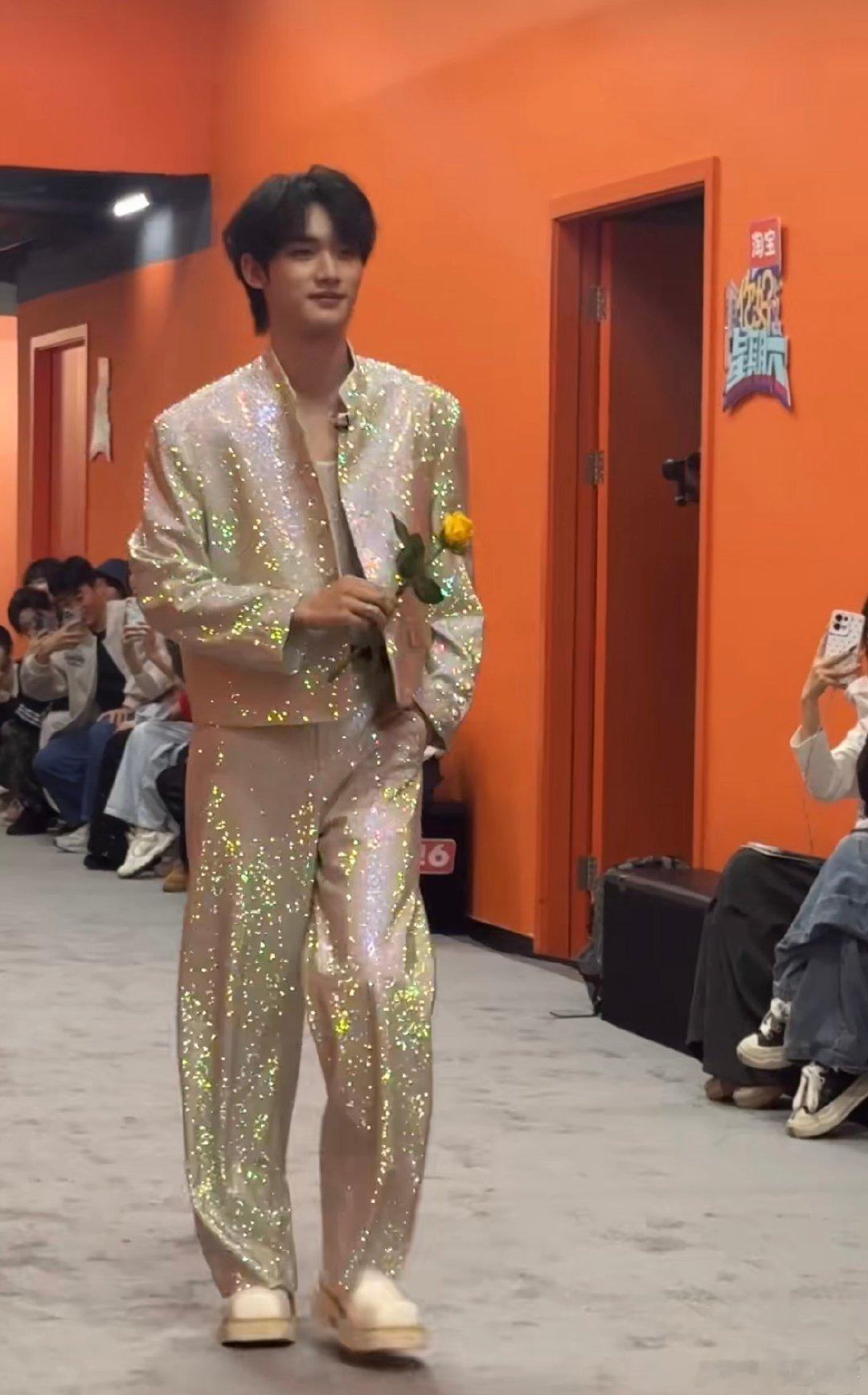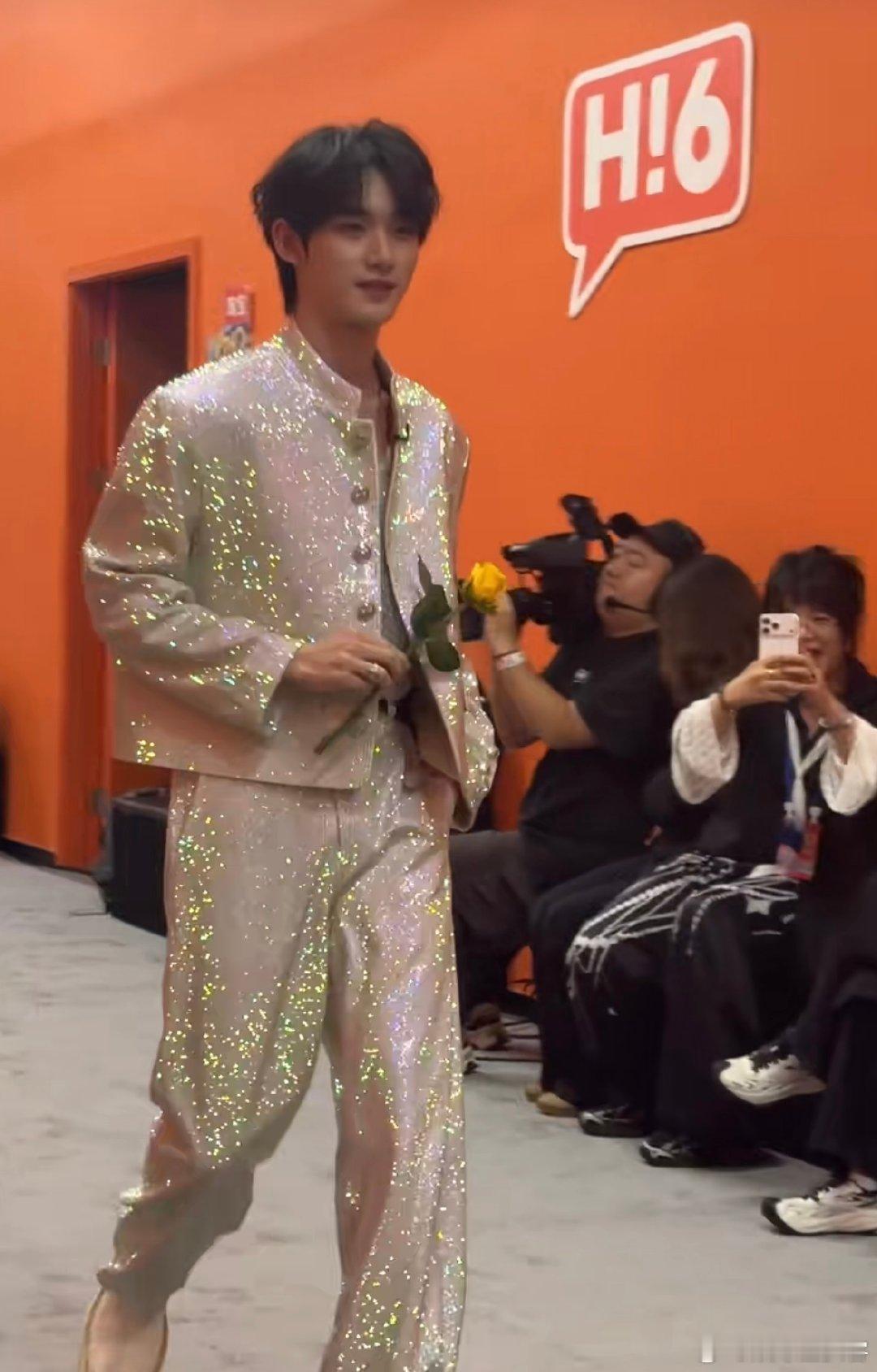 丁程鑫手持黄玫瑰走秀 舞台上的他自带光芒,黄玫瑰在手中更显优雅贵气,每一帧都让人移不开眼!你好星期六