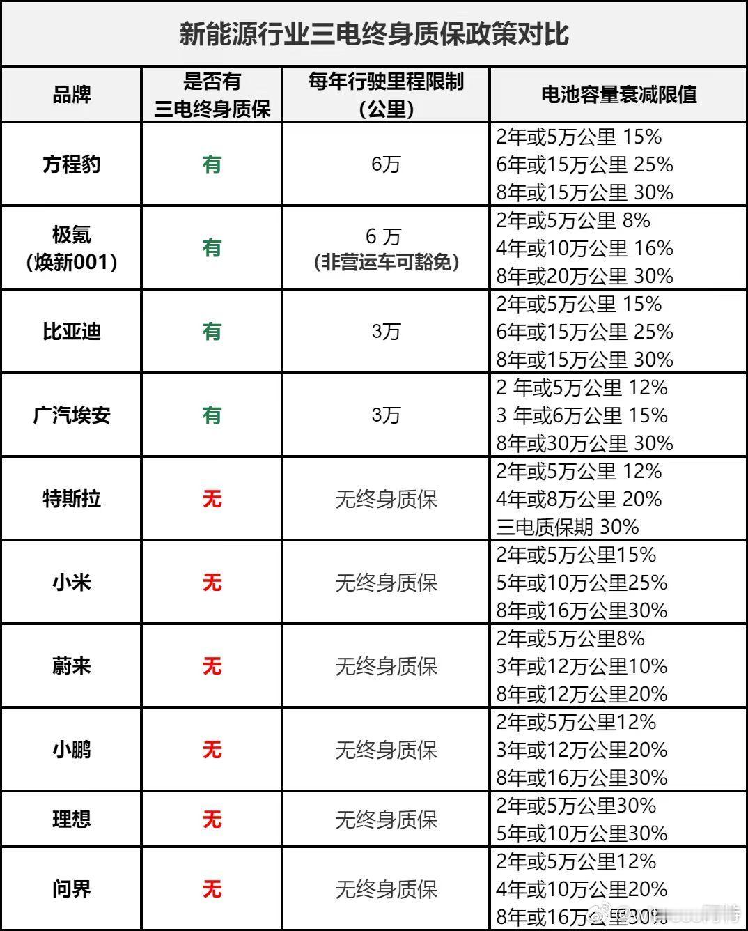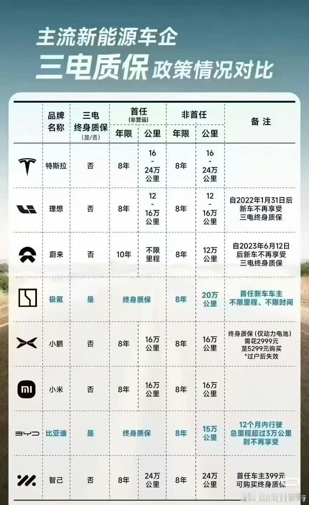 关于新能源车三电质保的问题,我找了友商的政策来对比(图2,图3)。没有拉踩的意思,我只想表达,在三电质保这方面,极氪是国产新能源车企里面最良心的车企,没有之一。
