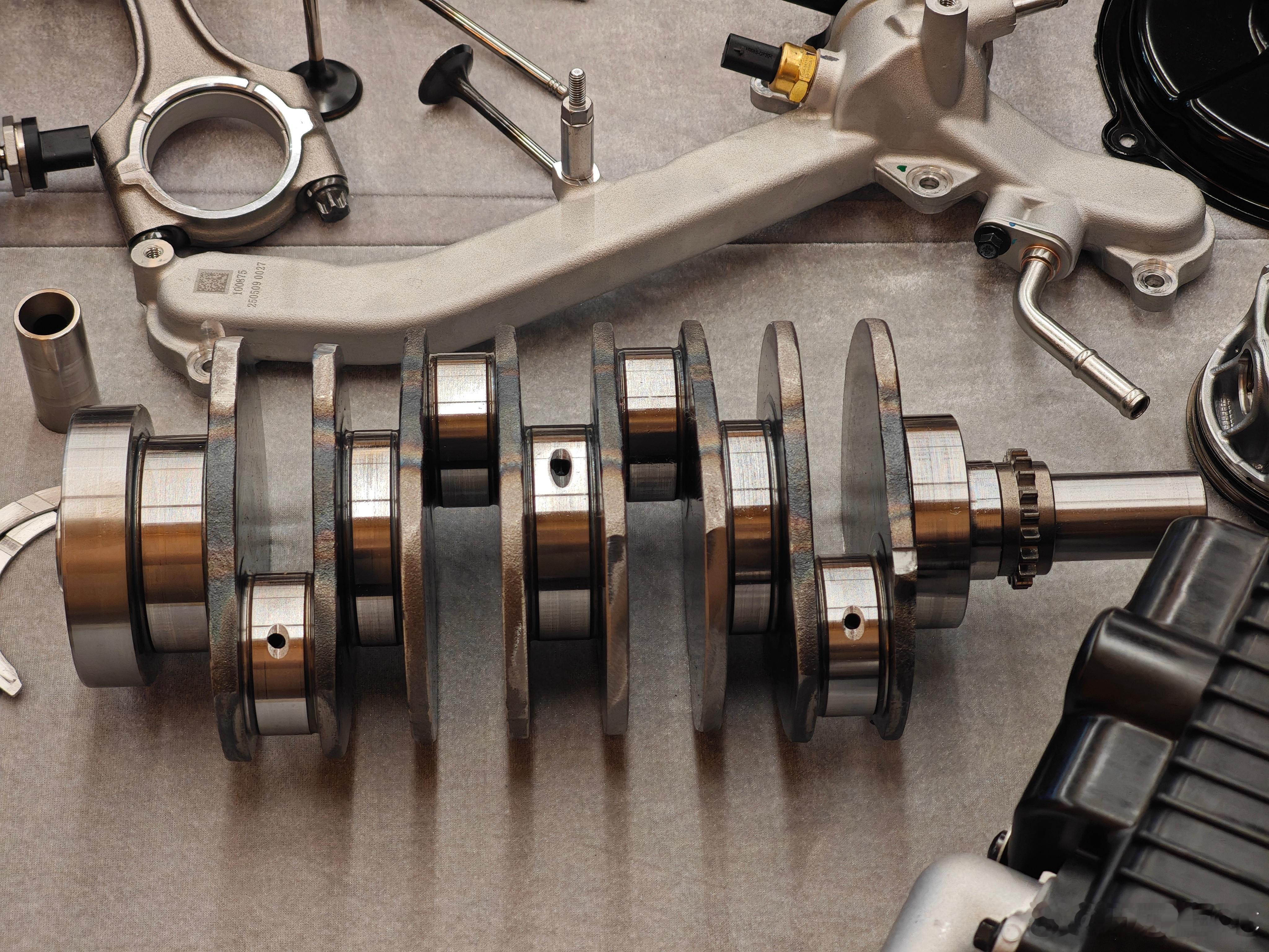 1234,四个曲轴销对应四根活塞连杆,确认是正儿八经的拳击手发动机,不是180°的V型发动机。