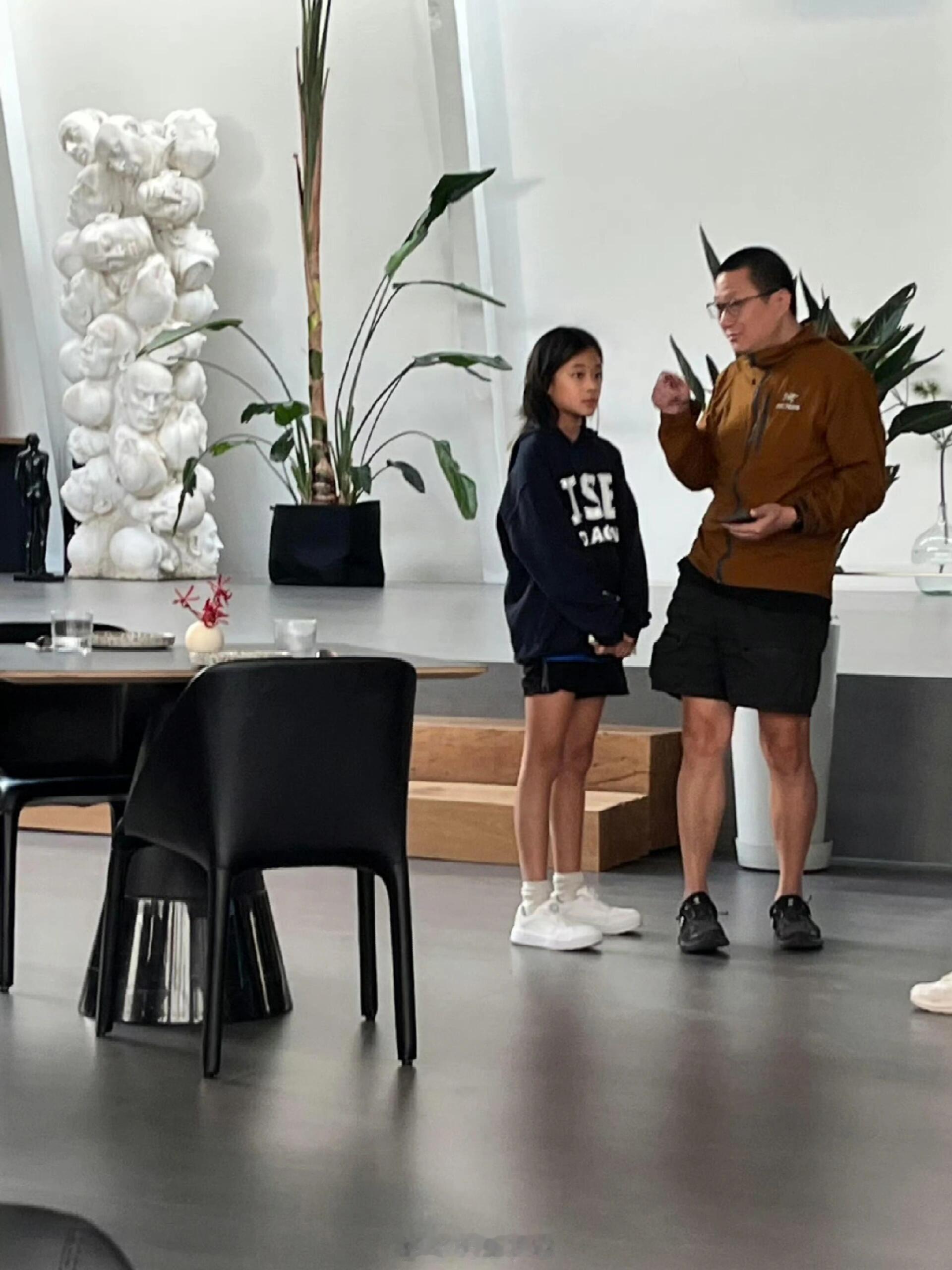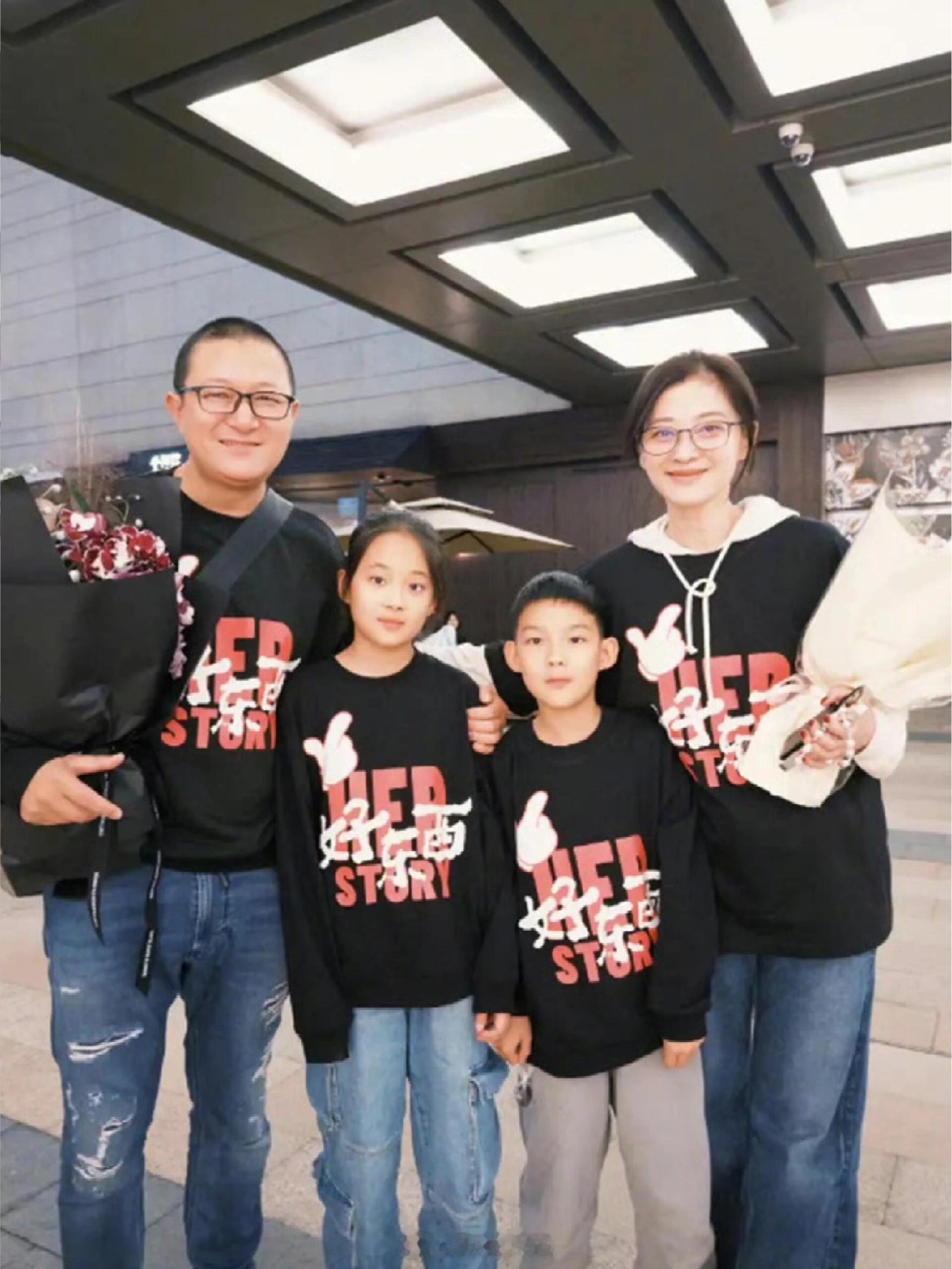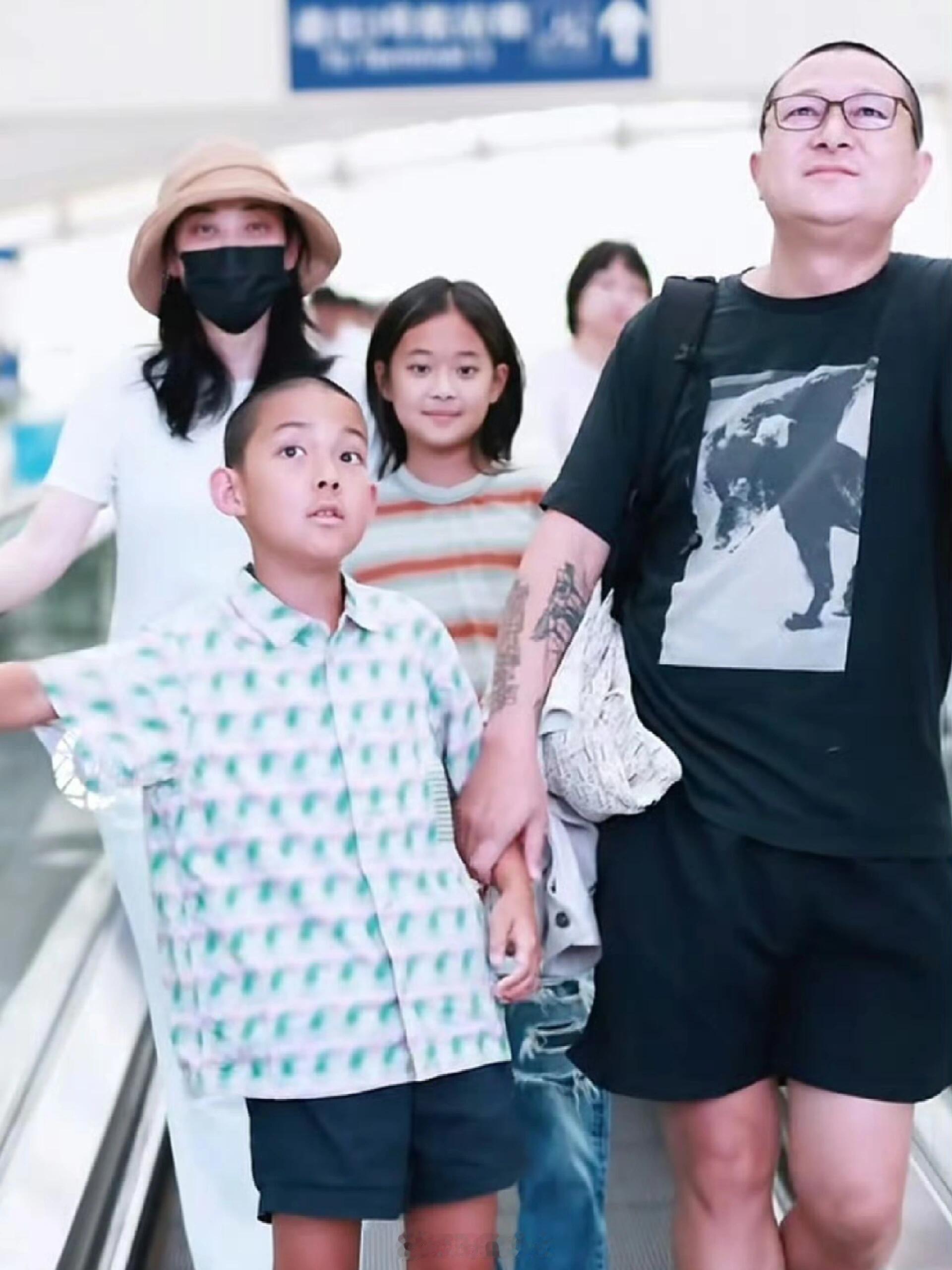 梅婷一家四口看网球,曾剑露大花臂面相好凶,12岁快快成妈妈翻版