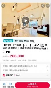 日前,有宣称“特价房捡漏”的网络账号在社交平台发帖,一套位于成都市成华区双庆路附近近90平方米的房屋,标明“凶宅”后,标价26.6万元销售,一时间引来广泛关注。10月15日,记者走访发现,这套“凶宅”的信息实际上是某资产公司上传,以拍卖房的名义来竞卖,其背后的辅助拍卖公司宣称可以确保客户“零风险过户”。而类似“凶宅”实际上在法拍平台并不少见,成交价远低于市场价。