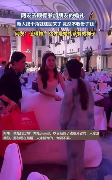 “值得全国推广!”女子去顺德参加朋友的婚礼,特地包了一个大红包,但万万没到,红包送上后,朋友却把红包推了回来!女子纳闷,难道是嫌少?朋友解释:“人到了就行了!红包摸一下就代表收到了!”网友:这格局,怪不得人家有钱! “这格局,怪不得人家有钱!”最近全网都在聊顺德一场婚礼,一句简单的感慨,戳中了无数人对人情往来的心声。 网友们吵得热火朝天,有人晒出老家天价彩礼清单,满是无奈;有人吐槽一年随礼掏空积蓄,被人情债压得喘不过气;还有人直言早就厌倦了“随礼-收礼”的循环,却不得不被世俗绑架。 而这一切热议的源头,只是一位外地女士分享的亲身经历,没有华丽的修饰,却让无数人看到了人情最本真的样子。 这位女士老家的婚俗向来“实在”,结婚要天价彩礼,哥哥当年结婚差点掏空家底,就连孩子满月、升学,甚至家里生了母猪,都要摆酒收礼金。 所以当她收到顺德朋友的婚礼邀请时,半点不敢怠慢,专门请了假,换了崭新的钞票,选了个红彤彤的红包袋,包了一笔不小的钱,坐高铁赶往顺德赴宴。 婚礼办在当地一家档次不低的酒店,大厅布置得精致大方,顺德鱼生、双皮奶等特色美食已经摆上餐桌,宾客们三三两两聚着聊天,没有刻意的寒暄,氛围轻松又热闹。 她跟着人群上前道贺,双手郑重地递上红包,满心都是对朋友的祝福,等着对方收下后就入座。 可接下来的一幕让她当场愣住,手里的红包被轻轻推了回来,新人只是笑着摸了一下红包,没有要收下的意思。 她心里直犯嘀咕,是不是自己包的钱太少,或者哪里做得不合当地规矩,脸上的笑容都有些挂不住。 旁边的新娘妈妈看出了她的窘迫,主动上前解释,顺德人办婚礼,图的是亲朋好友聚在一起热闹,不是为了收礼金,红包摸一下、折个角,就代表收下了心意,真收下钱反而见外。 她将信将疑地观察了一圈,发现其他宾客的红包也都是这样被退回的,没人讨论红包金额,大家都在兴致勃勃地聊新人的趣事,分享着喜悦。 这种场景让她格外感慨,和老家凡事讲礼金的风气比起来,顺德这场婚礼透着一股让人舒服的通透。 其实不止顺德,温州、舟山、潮汕等地也有类似的习俗,摆豪华宴席根本不差钱,就怕请不来人,办婚礼时还会给宾客送价值不菲的伴手礼,算下来都是“亏本”的买卖。 网上还有不少类似的正能量案例,浙江宁波一对新人办婚礼,不收礼金只收儿童书籍,最后凑了上千本捐给乡村学校;福建泉州有些家族,用自制茶叶当贺礼,清茶淡交反而情谊更久。 这些做法看似打破了传统,实则是跳出了“金钱衡量人情”的怪圈。 就像顺德婚礼上那位邻座宾客说的,顺德老板们算的不是礼金账,能请来这么多朋友捧场,本身就是资源和人脉的积累,今天我给你面子,明天你帮我一把,这比收那点礼金划算多了。 整场婚礼下来,没有礼金的攀比,没有人情的算计,只有纯粹的祝福和相聚的欢乐,这才是婚礼原本该有的样子。 网友们羡慕的,从来不是“不收礼金”这件事本身,而是那种不被金钱束缚的豁达,是把情谊放在第一位的格局。 每个地方都有自己的传统习俗,没必要强制统一,但顺德人“重情谊轻金钱”的理念,确实给大家提供了一个新的思路。 参加婚礼本来就是为了见证幸福、分享喜悦,要是能少一些关于礼金的纠结,多一些真诚的陪伴,想必大家都会更轻松。 这大概就是顺德婚俗能引发全网共鸣的原因,毕竟没人愿意被人情债绑架,大家都想在轻松自在的氛围里,传递最纯粹的美好。 那么到最后,你们是怎么看的呢? 如果各位看官老爷们已经选择阅读了此文,麻烦您点一下关注,既方便您进行讨论和分享,又能给带来不一样的参与感,感谢各位看官老爷们的支持!