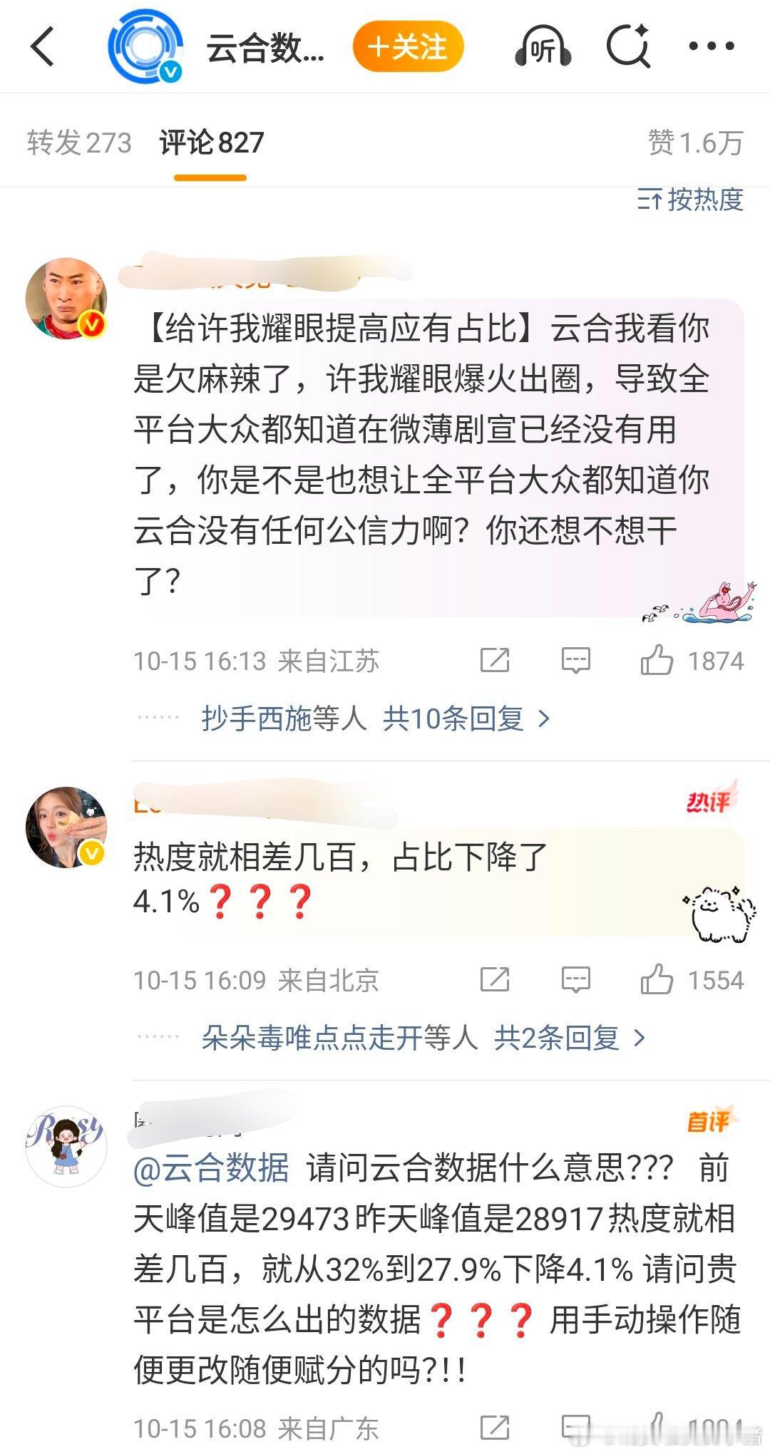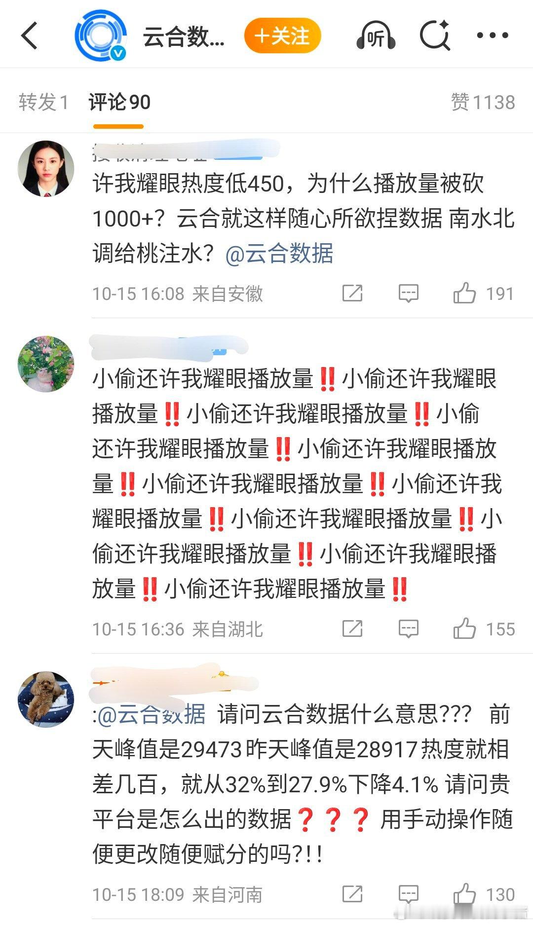赵露思粉丝在云合数据官微评论区下维权,称许我耀眼播放量被砍[流汗]