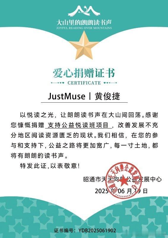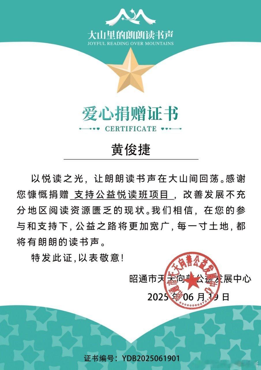 黄俊捷粉丝又在默默做公益了,捐赠支持公益悦读班项目,让朗朗读书声在大山间回荡,积