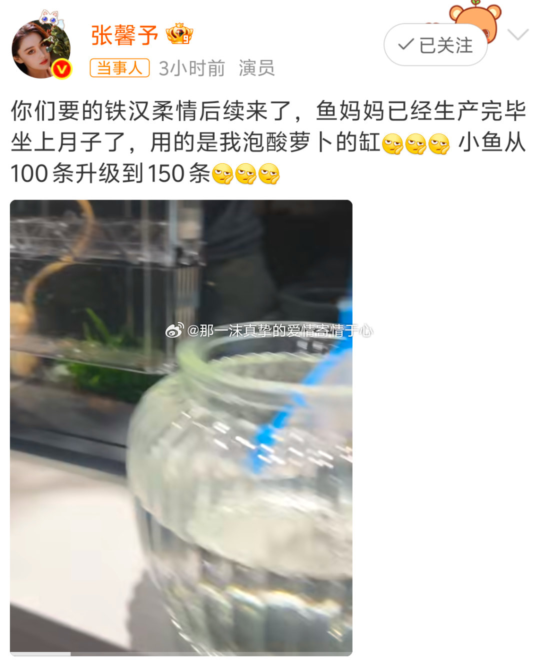 何捷用张馨予泡酸萝卜的缸给鱼坐月子