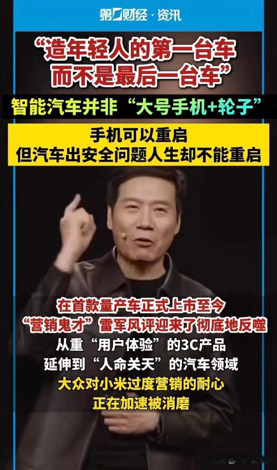 上海媒体太敢说了,真是国际化大都市,实在让人佩服 第一财经隶属于上海文广集团,是上海的官媒之一,看到第一财经关于某汽车品牌的评论(我连名字都不敢提),只能说,上海不愧是国际化大都市,他们的媒体太敢说话了,不留一丝情面,这些话,任何一个自媒体作者如果敢写,就等着收律师函吧。 第一财经直接说:智能汽车并非“大号手机+轮子”,“造年轻人的第一台车,而不是最后一台车”,“手机可以重启,人生却不能重启”“杜绝洗脑式传播和过度营销”等等,还点名这个汽车品牌创始人。 第一财经,我真佩服你们记者编辑的胆大和看问题的直接尖锐,就是想问一句,你们真不怕收到律师函吗?[捂脸]央视财经热词 财经类媒体 融媒上海 央视财经网 财经一号 财经记者说 第二财经