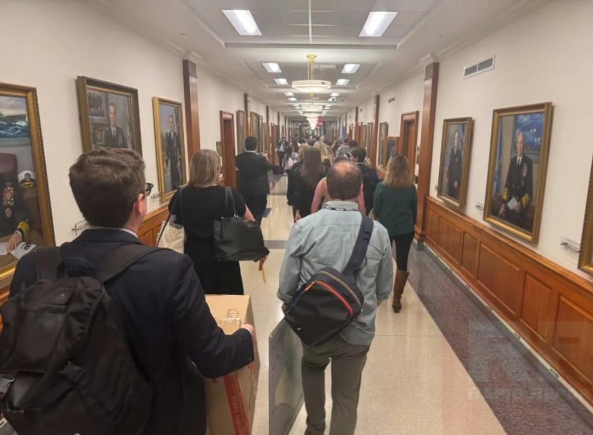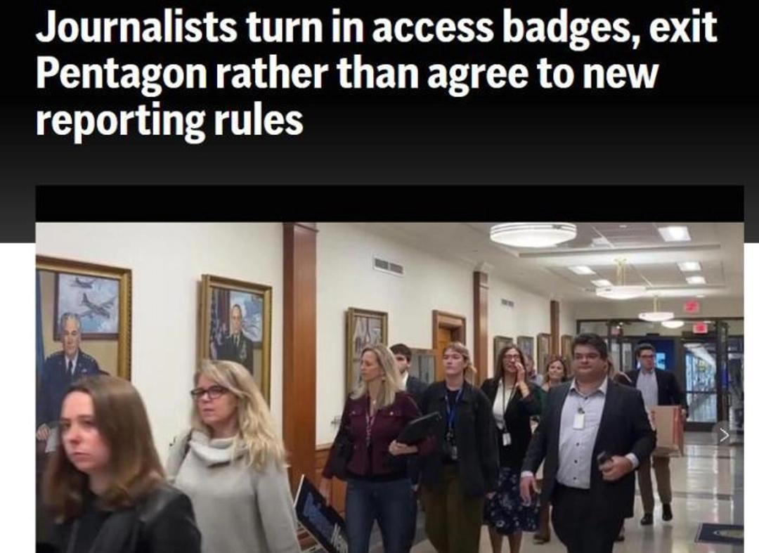 这下美国军方彻底把记者得罪光了。 10月15日下午,几十名记者抱着箱子集体离开五角大楼,场面那叫一个壮观。 事情就坏在国防部长赫格塞斯搞的四项新规上:记者得签保证书,不让报的内容一个字都不能写,走路还得被贴身盯着,连常驻办公室都给撤了。 这不就等于把记者的嘴和腿都捆上了吗? 结果除了极右翼的OANN,从纽约时报到福克斯新闻,自由派保守派这次罕见联手,直接交证走人。 要说这赫格塞斯,以前是福克斯的主持人,上台后把五角大楼改名“战争部”,开记者会的次数一只手都数得过来。 现在干脆连门都不让进了。 特朗普还跳出来说媒体破坏和平,可军方花着纳税人的万亿美金,老百姓还没权知道钱咋花的? 现在记者们只能在外围做报道,深度调查算是废了。 有退役将军都看不下去,说这是把公众当傻子喂信息。 本来标榜新闻自由的美国,这下在国际上可真是闹了大笑话。 说到底,安全不能成为掩盖真相的挡箭牌,当权者越是怕监督,越说明透明的重要性。 记者们今天退出的不是一栋大楼,而是在守住民主社会最后的底线。