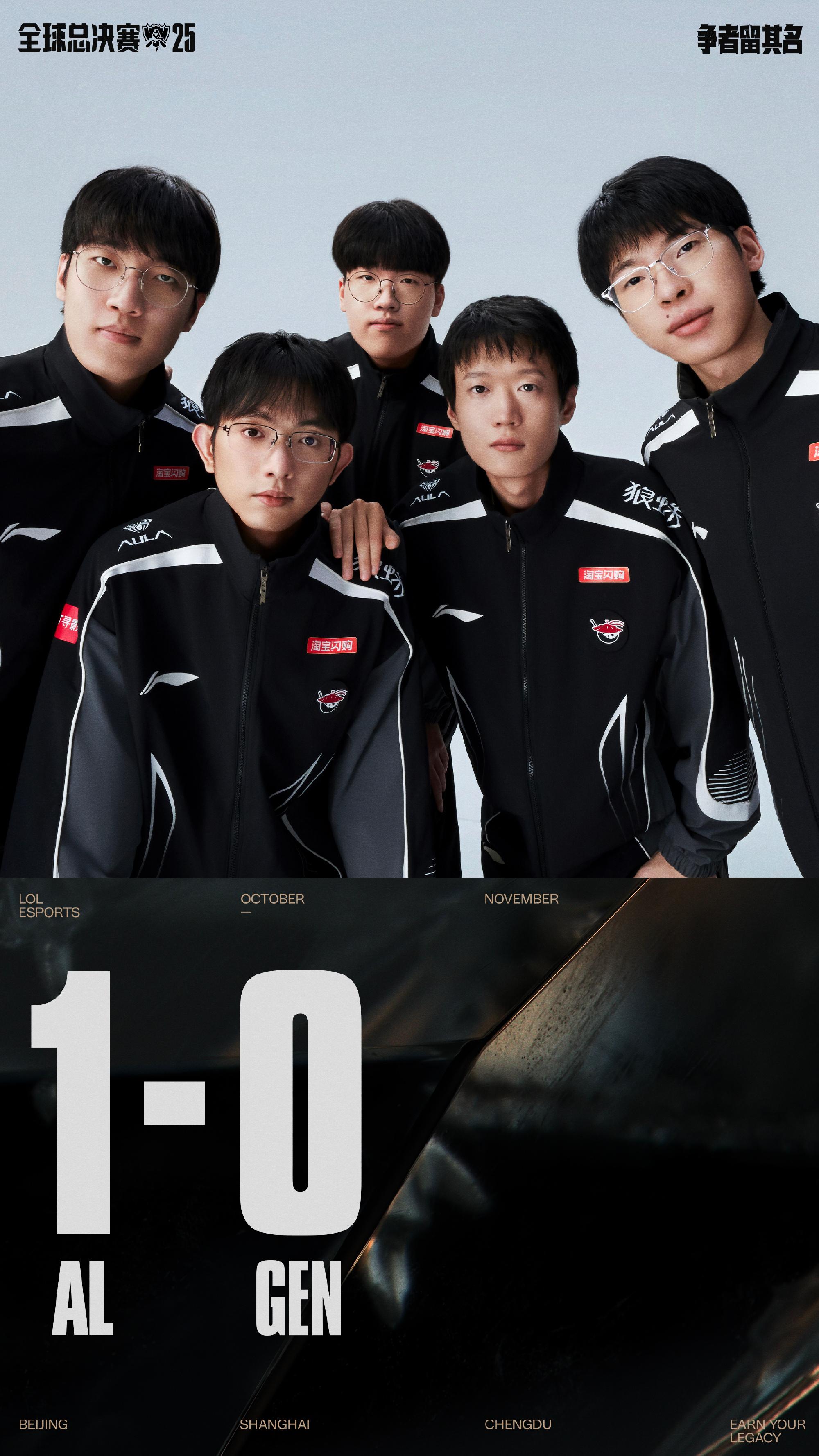 虎扑10月16日讯力克强队GEN!LPL官方发文祝贺AL: