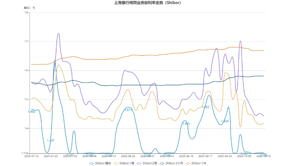 上海银行间同业拆放利率(Shibor)短期品种继续小幅波动,14天品种走低。具体来看,隔夜Shibor上涨0.00BP,报1.3160%;7天Shibo上涨0.50BP,报1.4190%;14天Shibor下跌0.90BP,报1.4430%。