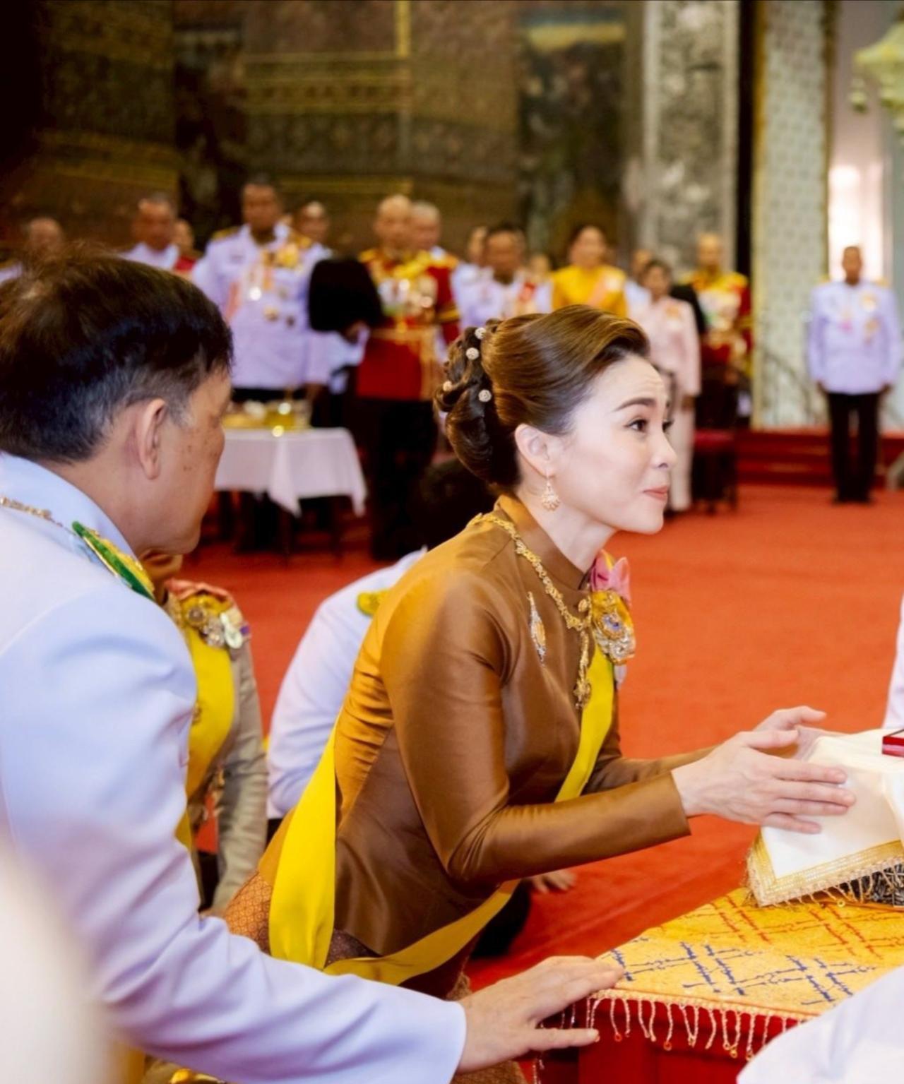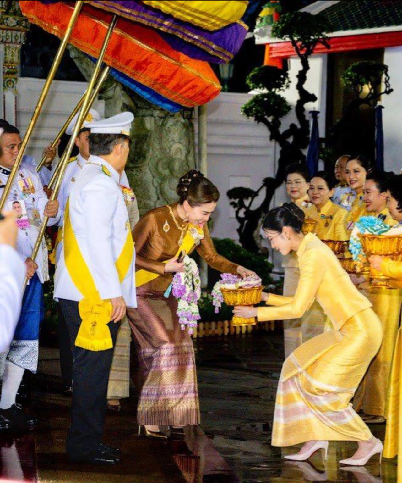 73岁泰王主动秀恩爱,深情款款看着苏提达 泰王堪称矛盾综合体,既携嫔妃团高调亮相,又主动与苏提达大秀恩爱,两条“主线”并行不悖。苏提达似早已习以为常,无心与妾室争宠。这般独特的婚姻模式,于现代社会而言,着实是闻所未闻、见所未见。