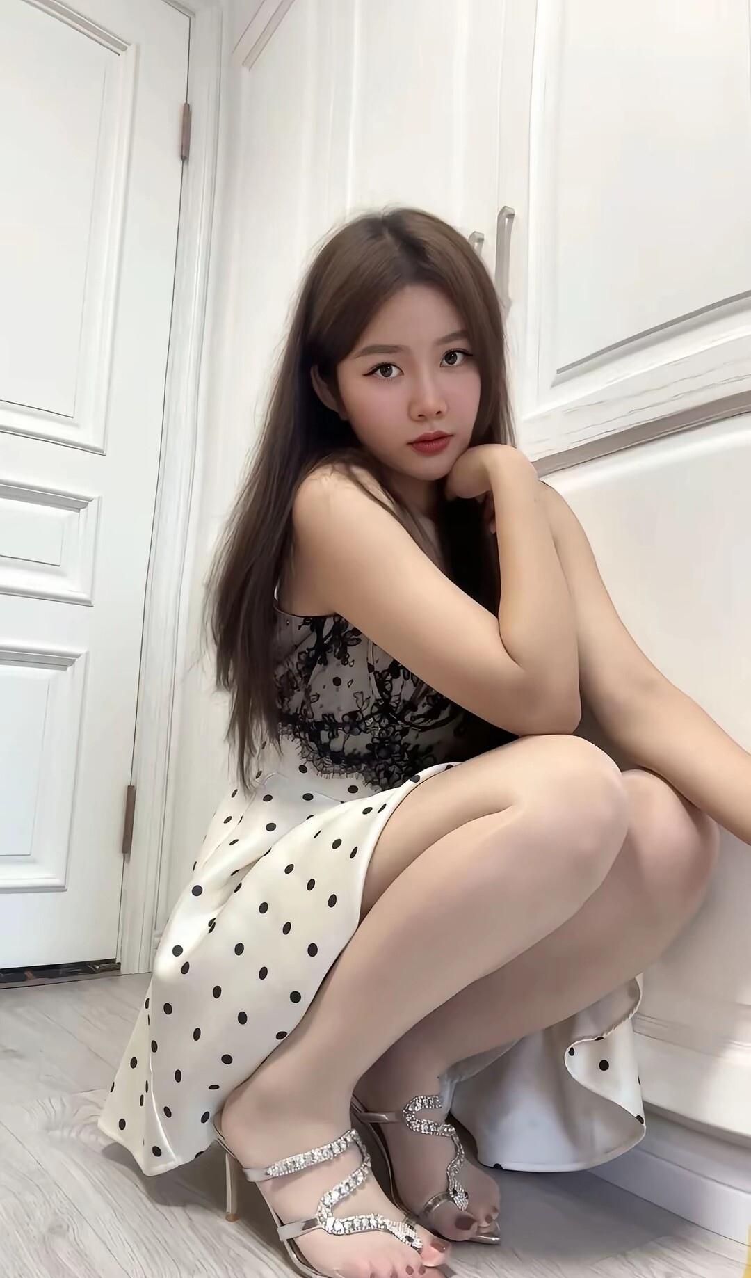 优雅黑发少女,黑白波点裙搭配闪亮高跟鞋,尽显时尚魅力!👗👠✨