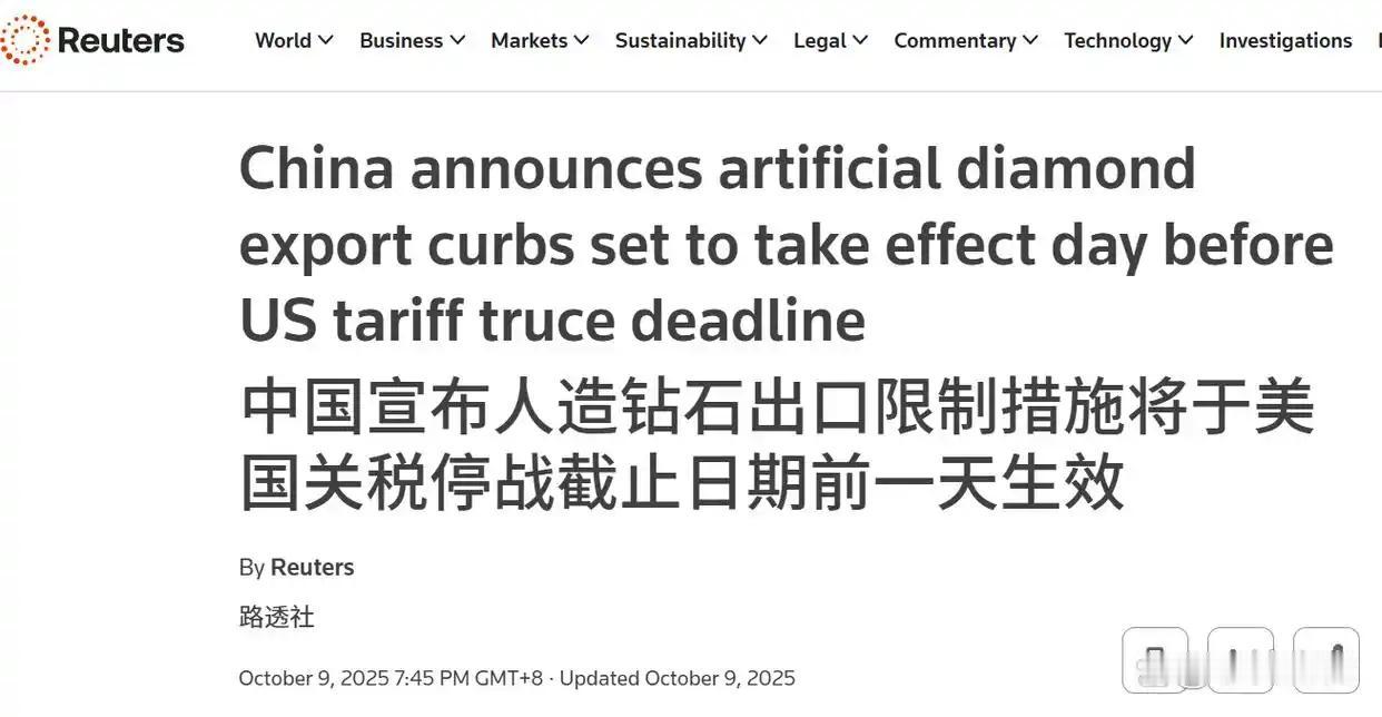 中国再出重拳,比稀土还致命,万斯劝中国要冷静。我国商务部已经决定,从下月8日开始,国产的人造钻石粒径≤50μm,必须要经过审批才能出口。 很多人可能以为人造钻石只是首饰里的小装饰,现在要说清楚了:小到50微米以下的钻石粉末,别看它细到肉眼都快看不见,却是现代工业离不开的重要原料,在芯片、精密仪器、光刻等领域,每一粒微粉都是“高科技工厂里的硬通货”。 比方说做芯片,硅片越薄越好,这就全靠这些纯度高、颗粒细的金刚石粉末打底,要是缺了这个环节,高端芯片一夜回到解放前。 台积电去年在美国新厂试产,一批三百片顶级硅片因为切割刀不行全宣告废弃,白白亏损了数千万美元,深究根源,问题出在没有用到中国人造钻石工厂做出的高纯度微粉,只配拿未审批的“试点货”,直接拉了后腿。 比这更尴尬的是欧美高端制造依赖中国的状况,看起来谁都不愿意承认,但只要没人供货,芯片、光刻机就都得趴窝。 这背后是中国几十年攀科技高峰的结果,上世纪九十年代,美国和南非控制着工业钻石市场,中国的科研团队从那时起就盯上了“六面顶压机”技术,这种设备能模拟地底巨大压力,把石墨压成钻石。 经过不断突破,现在中国的第六代压机精度已超过当年西方设备,一台机器的产量能顶南非设备两倍多,凭借这项核心技术,中国从追随者变成了世界中心。 如今的河南,是全球钻石粉的心脏,当地企业从原料提纯到设备制造,再到微粉研磨,产业链紧密衔接,全球工业用金刚石中九成以上产自中国,光河南就占全国工业金刚石产能的九成,全世界几乎离不开中国的供货。 美国当然想摆脱这种依赖,2022年,美国能源部砸了1.2亿美元,希望华盛顿大学能做出“无压合成钻石”,他们的目标是绕开中国的高温高压路线。 结果两年过去,做出来的只有八微米左右的小晶体,纯度低、产量小,根本用不上生产线,与此同时,中国企业早已能稳定生产几十微米的高纯粉末,成本还比它们低八成,这种差距,让美国的“创新计划”成了空谈。 现在国外企业一看到中国要审批出口,紧张得不得了,半导体行业协会赶紧给国会递材料,说现在美国用的高端钻石粉有九成来自中国,一旦中国这道闸门收紧,几家主要工厂恐怕得三个月内停摆,想自己做,十年都追不上。 万斯等人还喊话让中国冷静,其实就是怕断了供,产业链炸锅。 不过这事中国并没“一刀切”,而是有讲究,中国的出口审批细分使用,看你要用钻石粉干啥,医疗、航空等民用领域,几天内批下来,谁都不为难,但美国企业要搞军工或者高级芯片,中国就直接掐断,敏感的供出去,不批。 这个策略,既不影响老百姓需要,也不给对方漏洞,挑着合作才是精明做法。 这次管控,比以往稀土大战还高明,让中国真正借产业链主动权,推动全球规则朝着“安全合规、集体协作”方向转型,主动权握在手里,是中国产业崛起最硬的底气。 参考信源:商务部、海关总署,连发4条重要公告——红星新闻