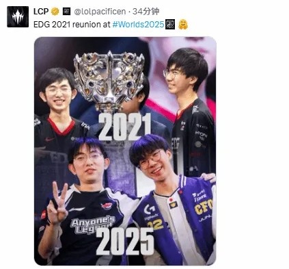 LCP晒Flandre和Junjia合影:2021EDG在2025全球总决赛上重逢